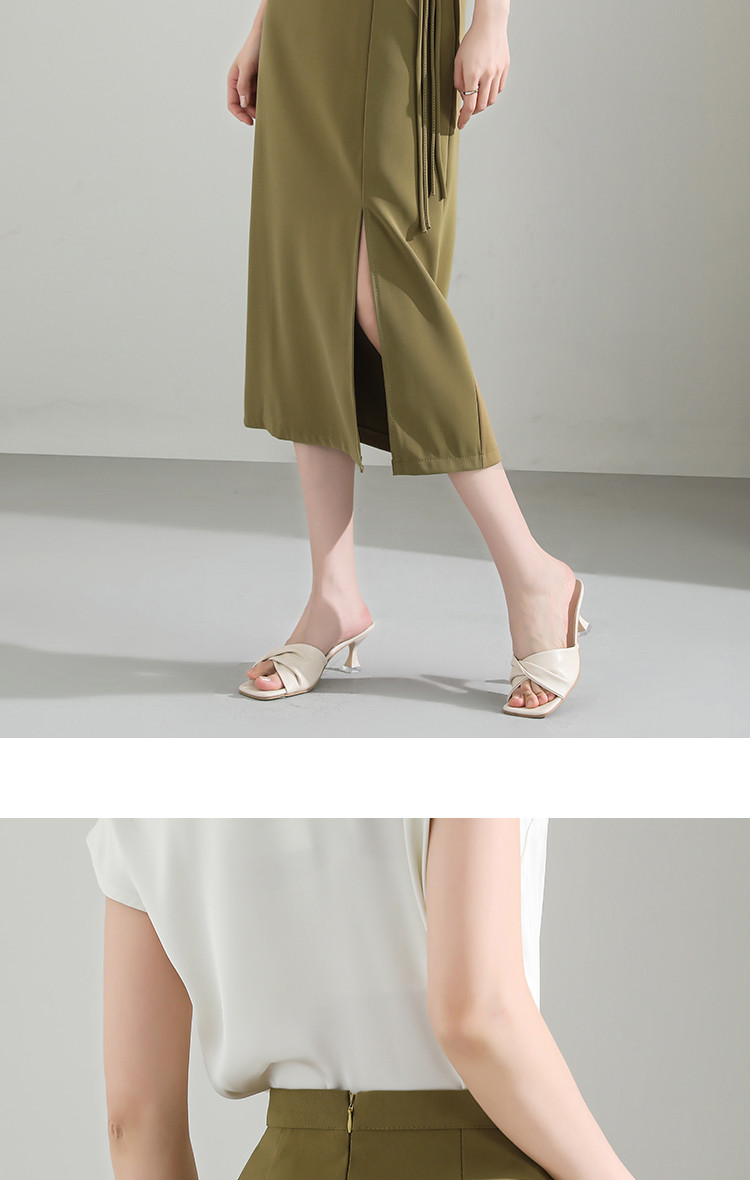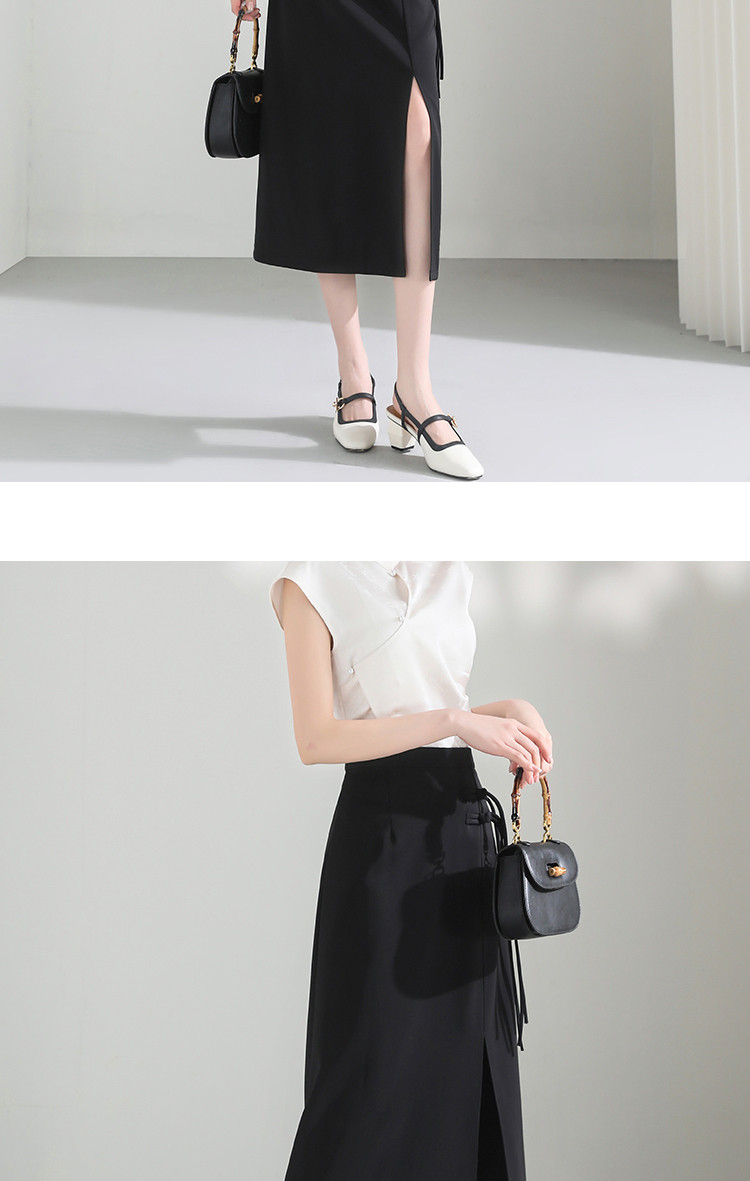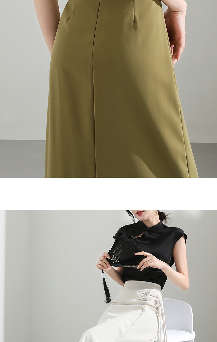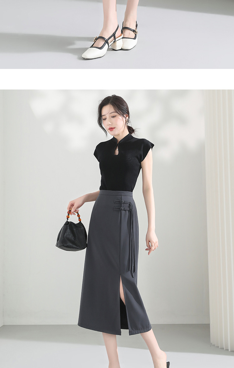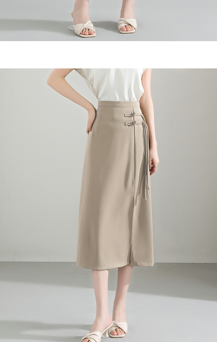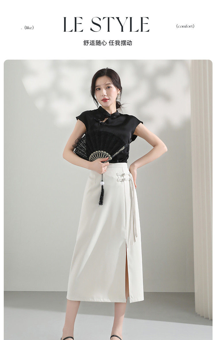 商品名称:夏季薄款新中式国风盘口流苏开叉设计半身裙时尚百搭通勤休闲长裙 440031