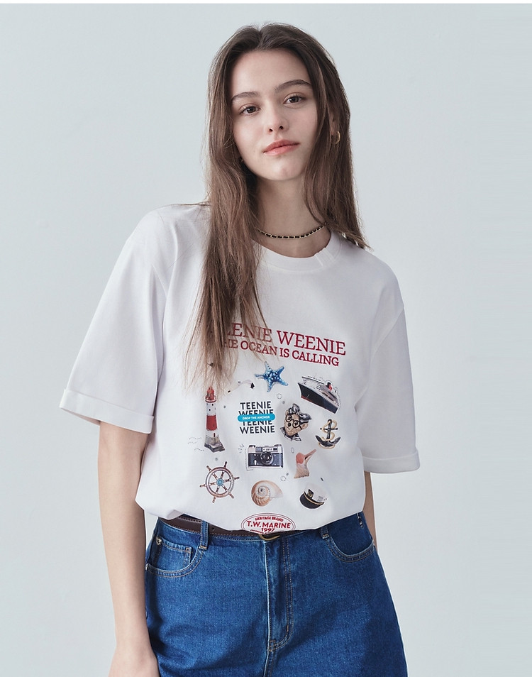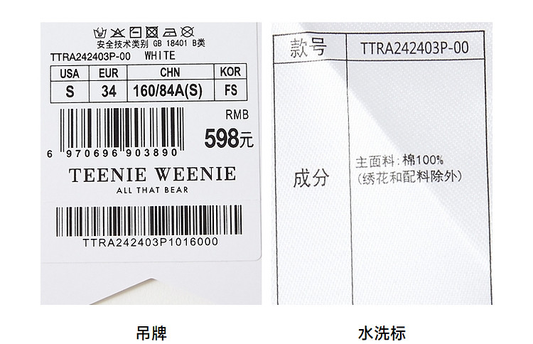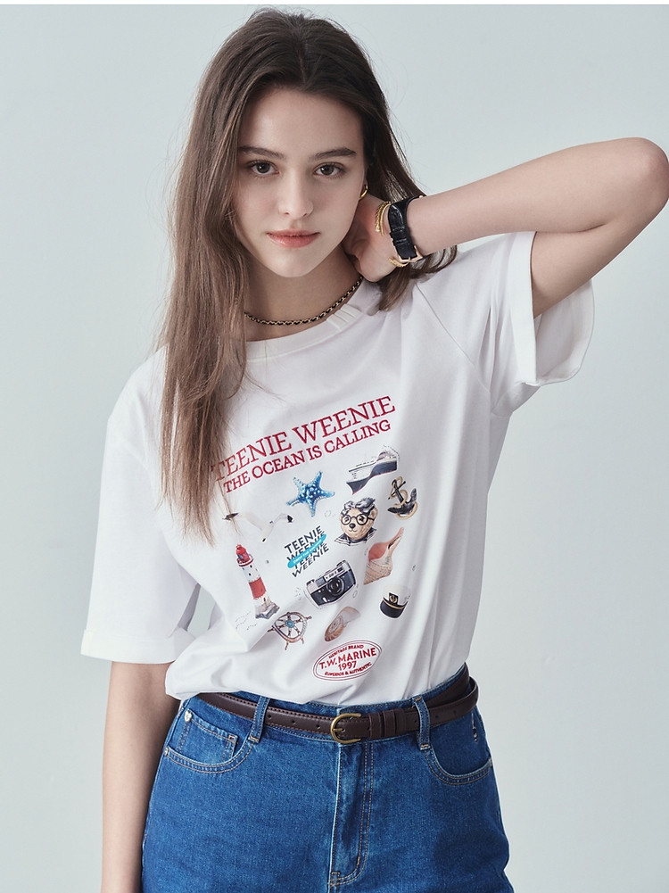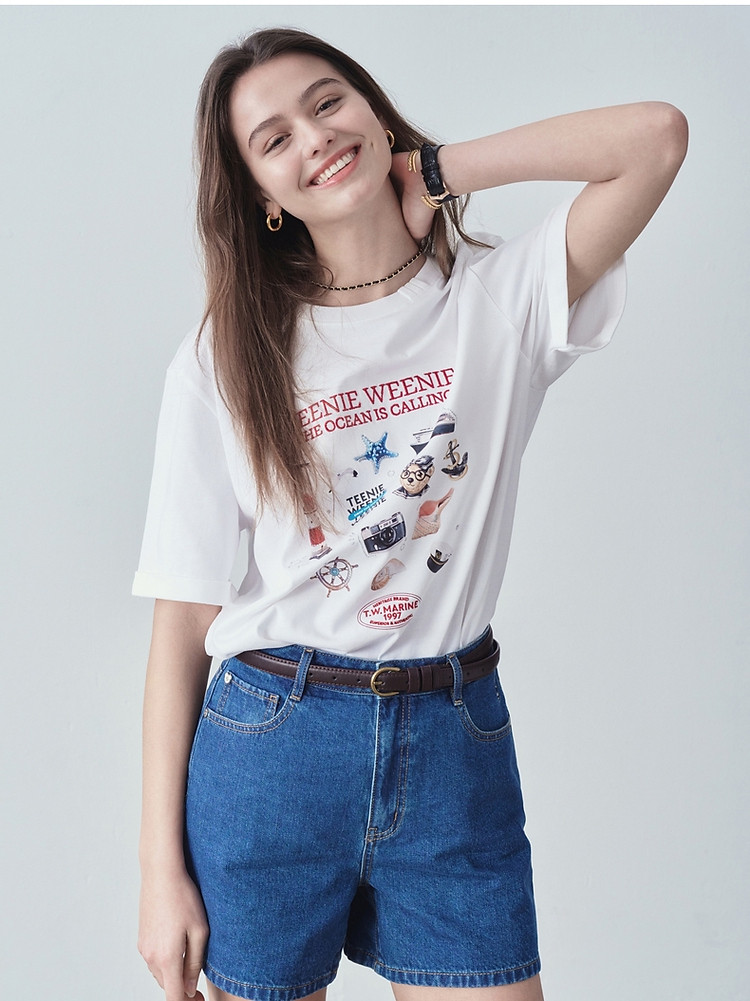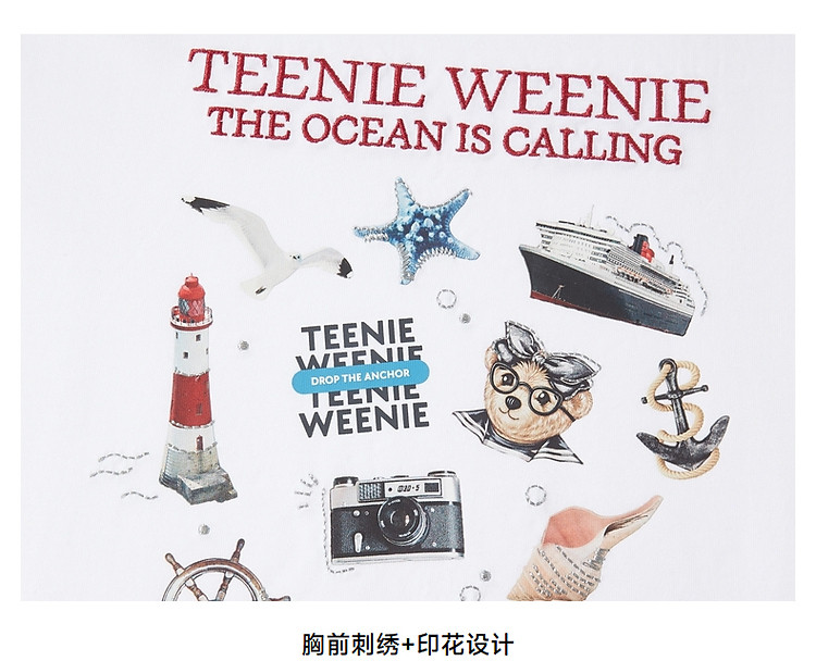 商品名称:小熊夏季款海军风圆领T恤白色时尚韩系上衣女士 376961