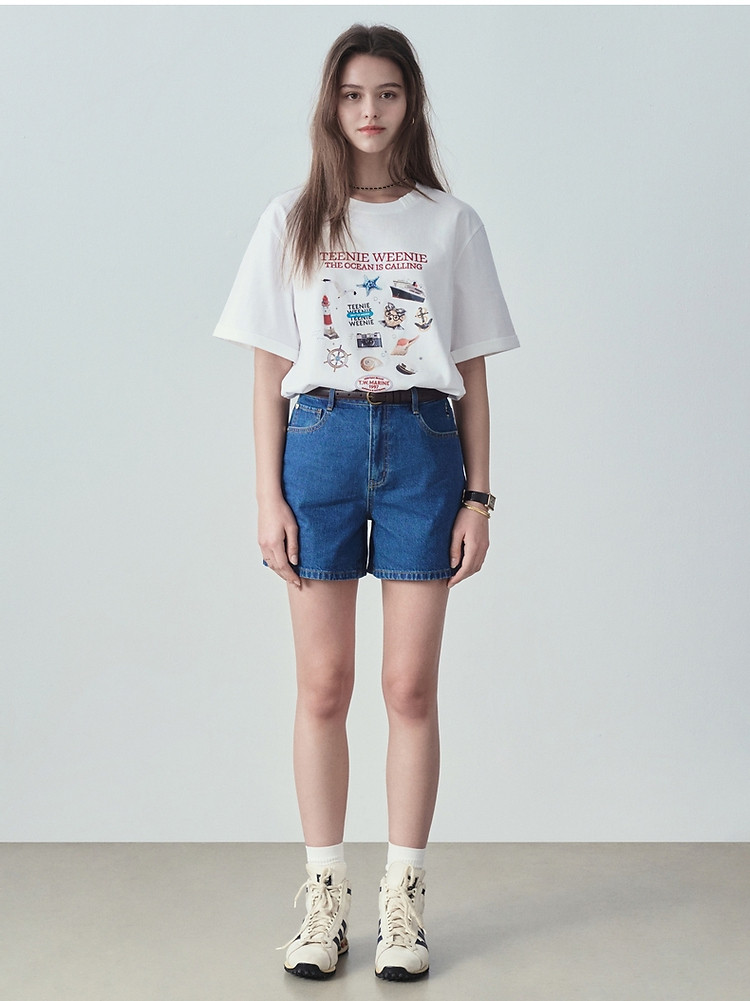 小熊夏季款海军风圆领T恤白色时尚韩系上衣女士 376961