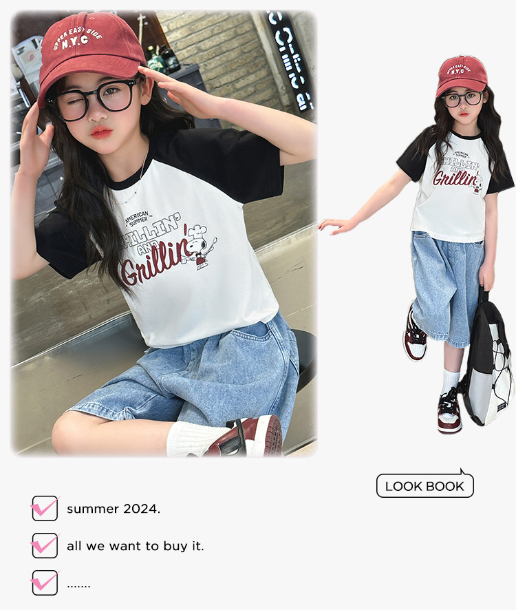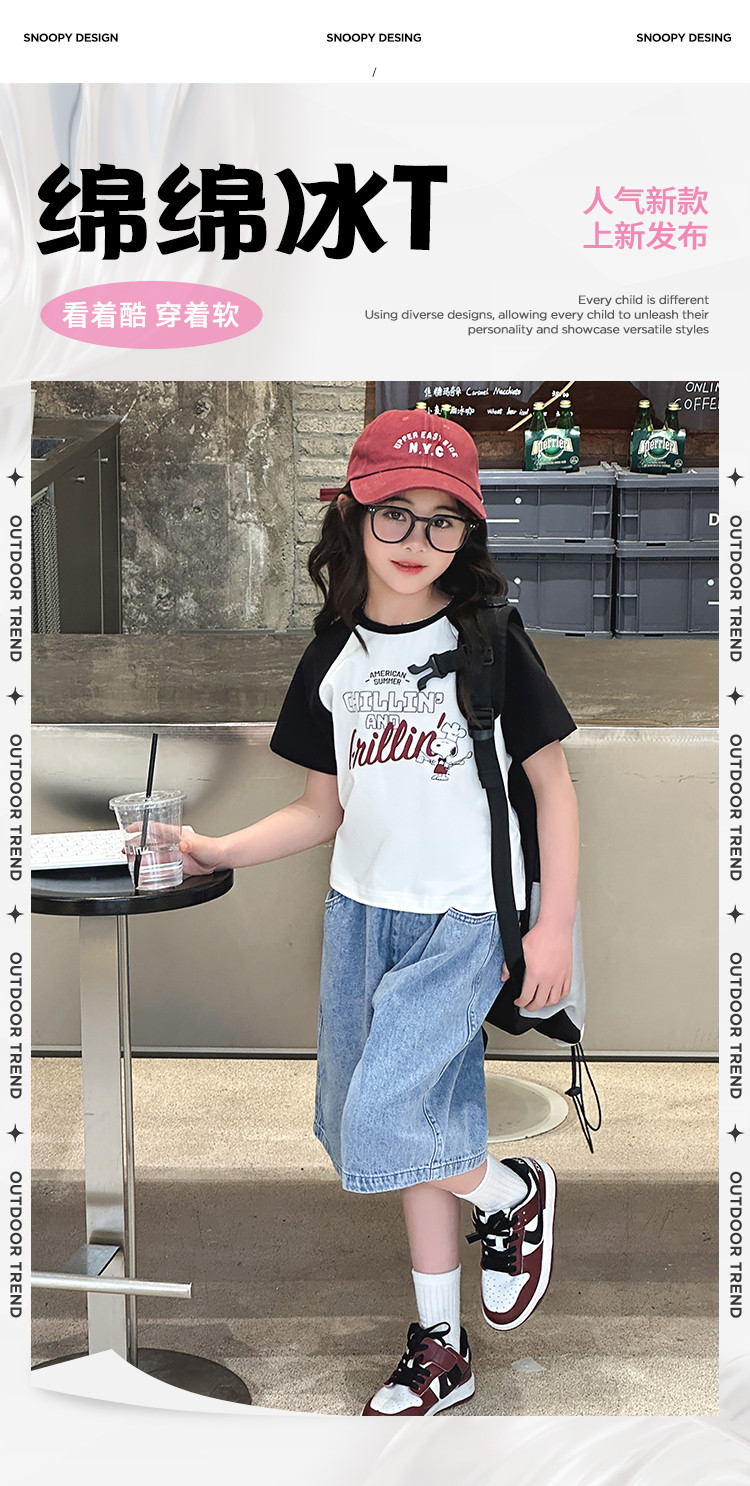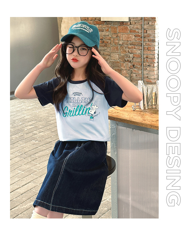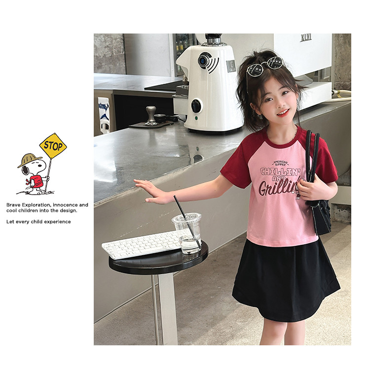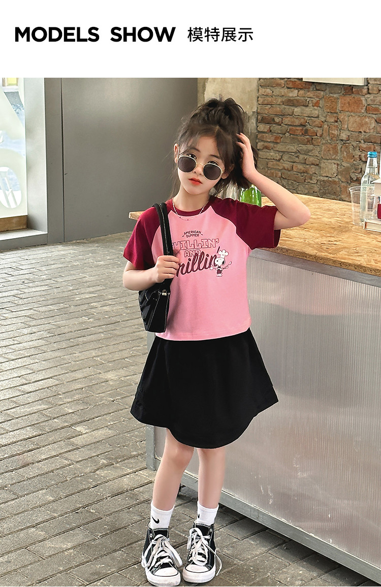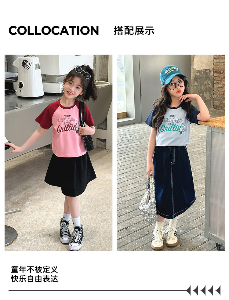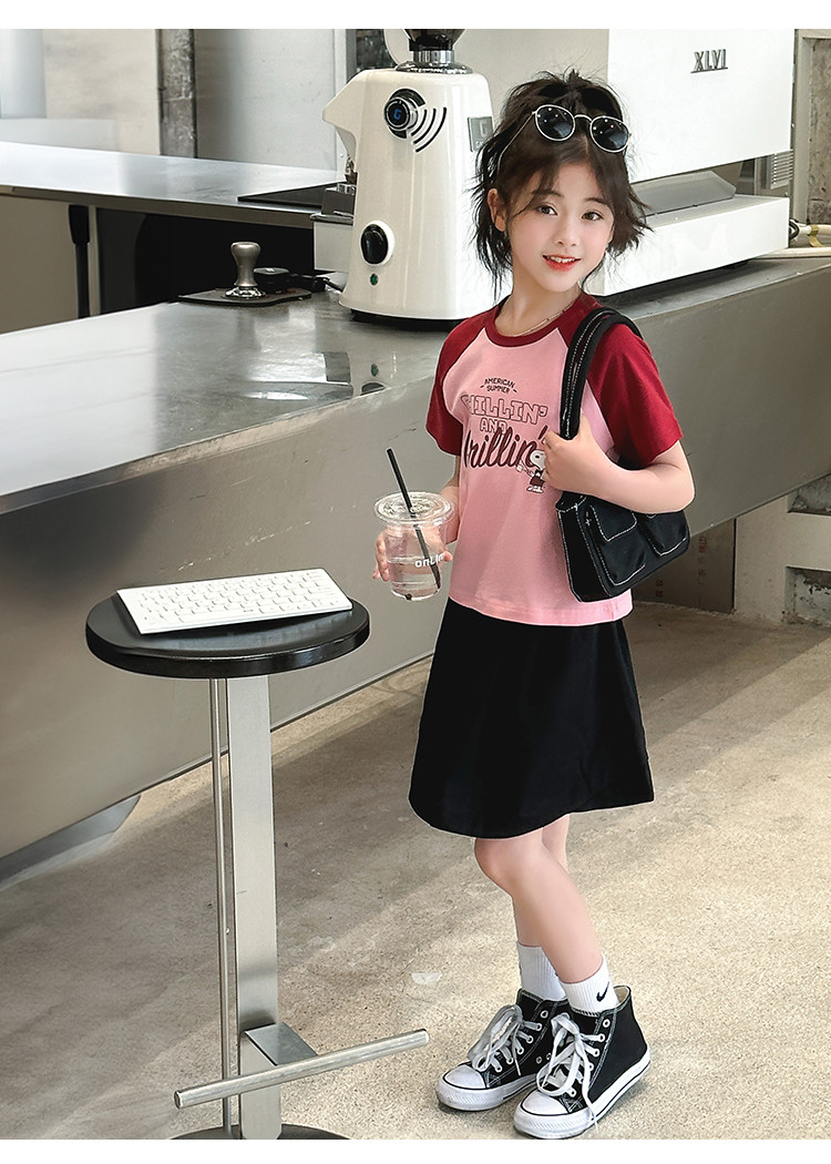 商品名称:【趣味撞色】夏季短袖甜美女童中大童夏装百搭短袖女童t恤 325720