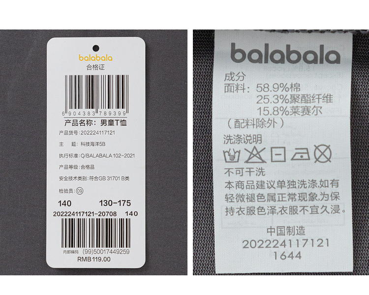 商品名称:巴拉巴拉童装儿童t恤短袖男童夏装凉感上衣大童速干时尚舒适印花 806213