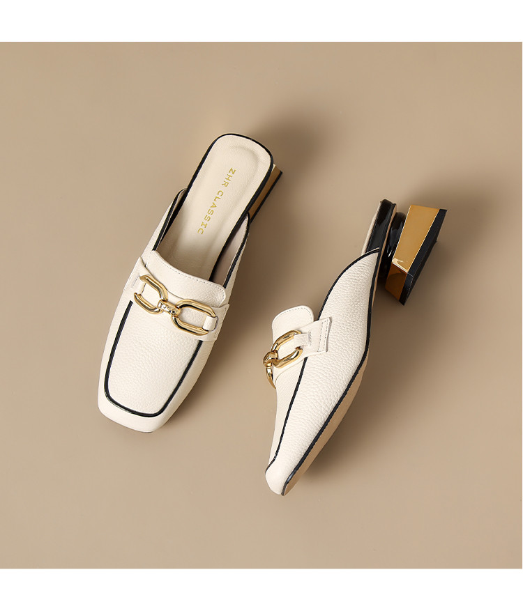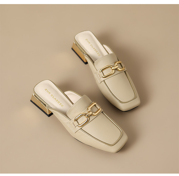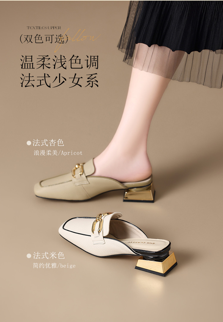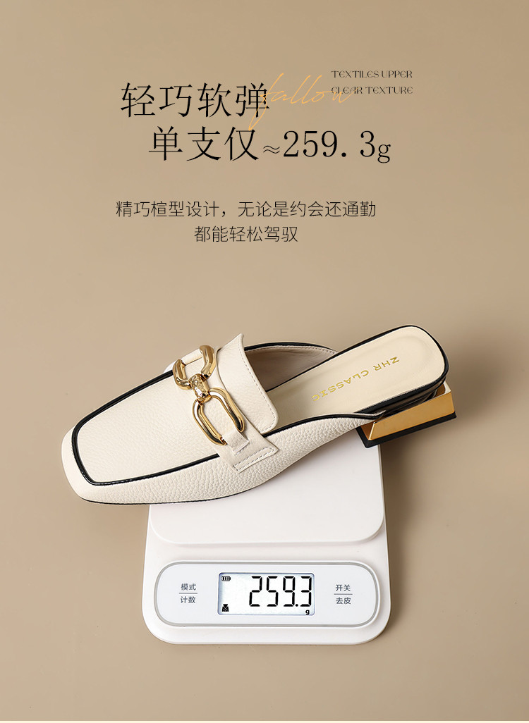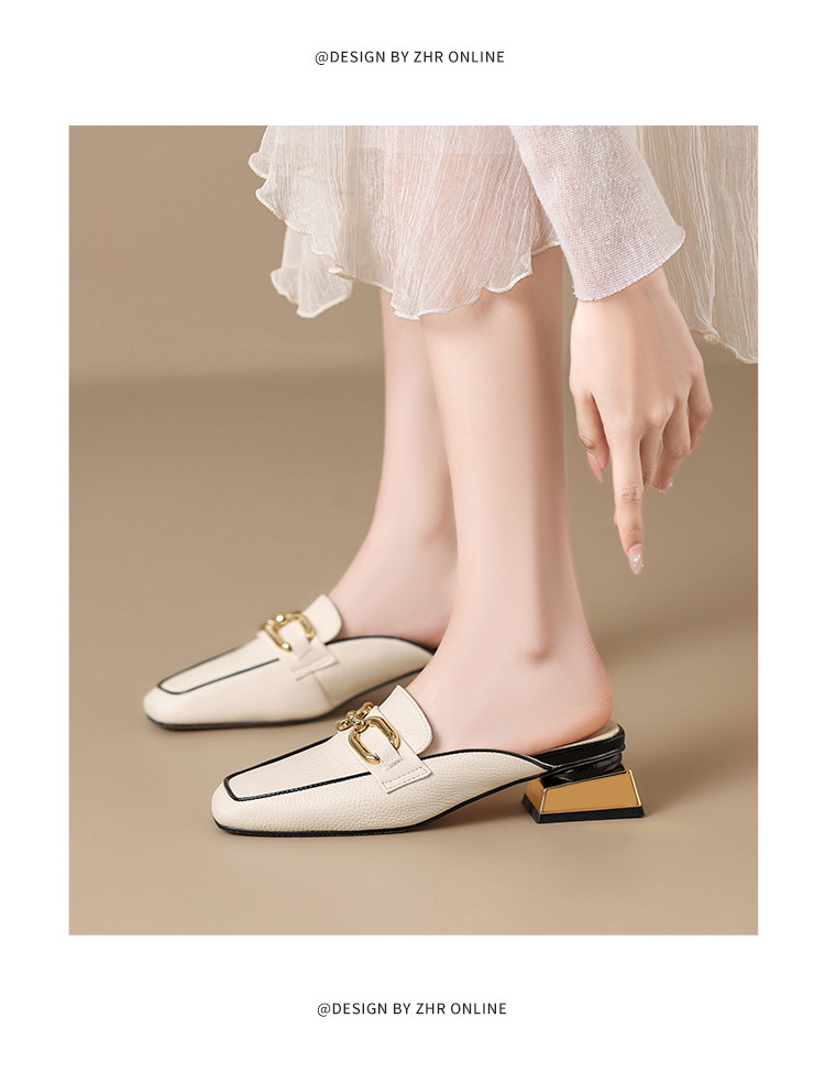 商品名称:【头层牛皮】金属扣件穆勒拖鞋女半拖凉拖鞋女士时尚夏季拖鞋女士 311168