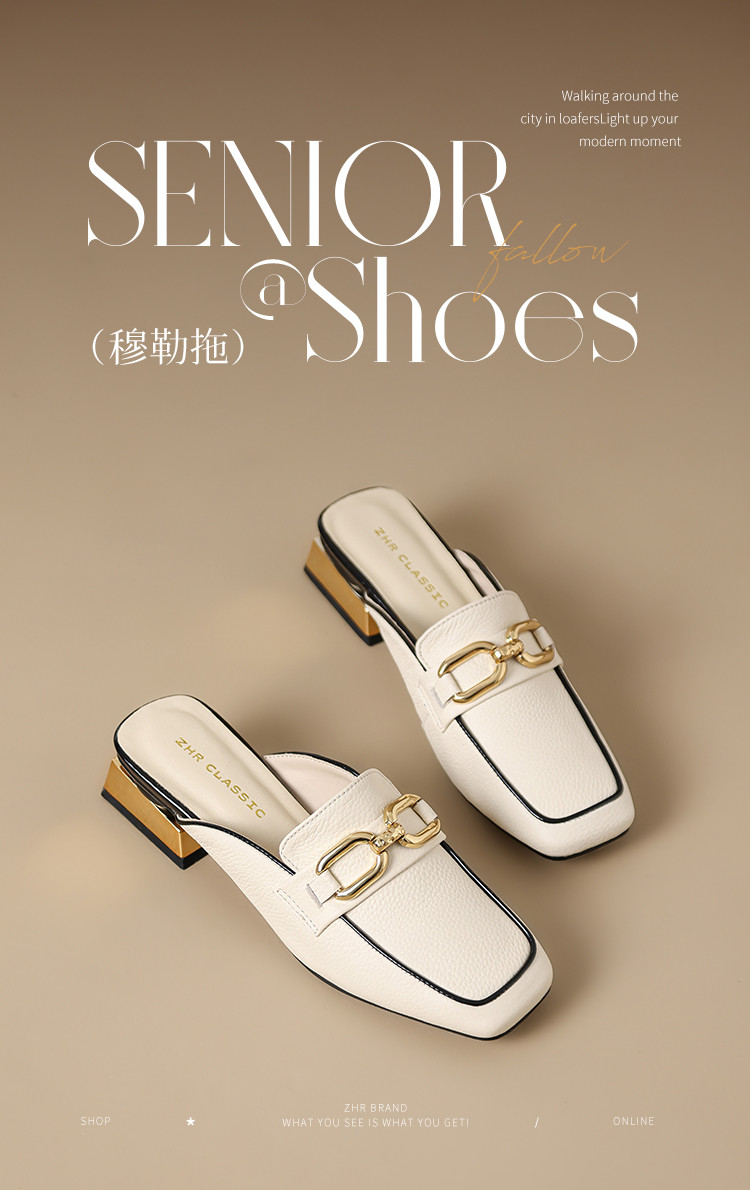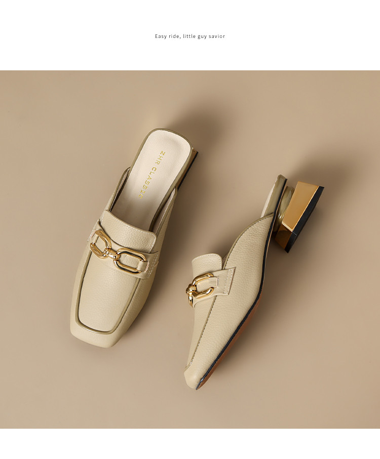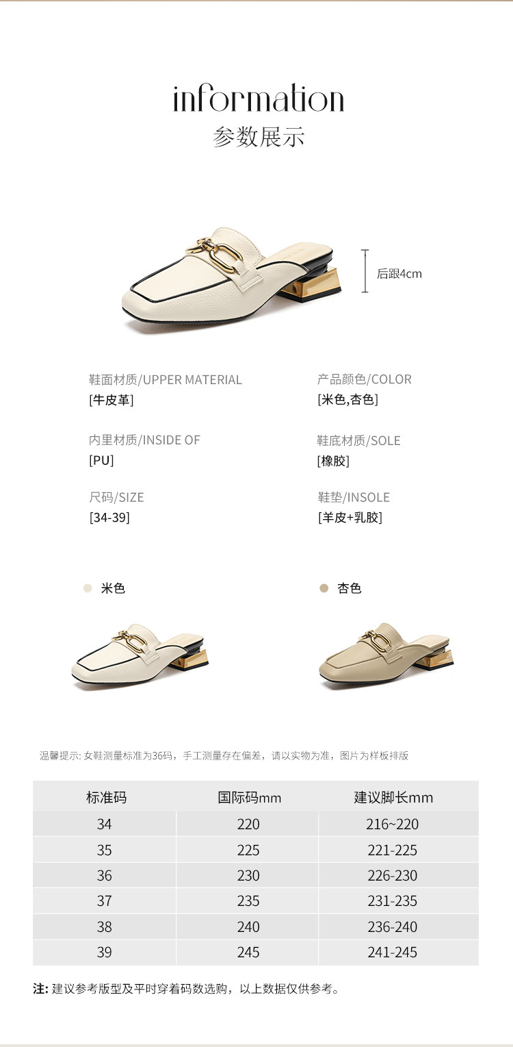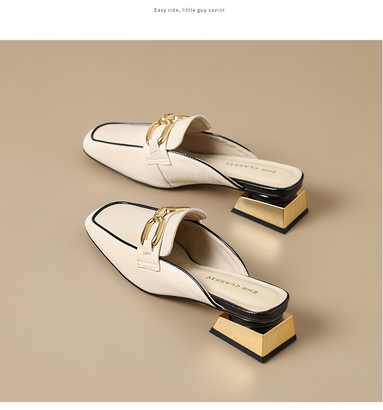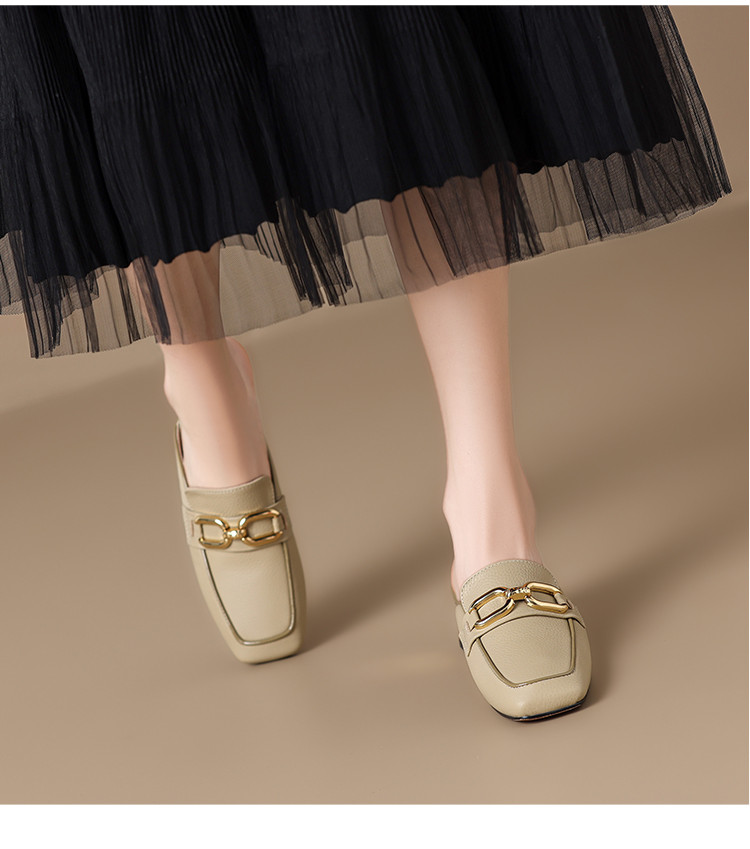 商品名称:【头层牛皮】金属扣件穆勒拖鞋女半拖凉拖鞋女士时尚夏季拖鞋女士 311168