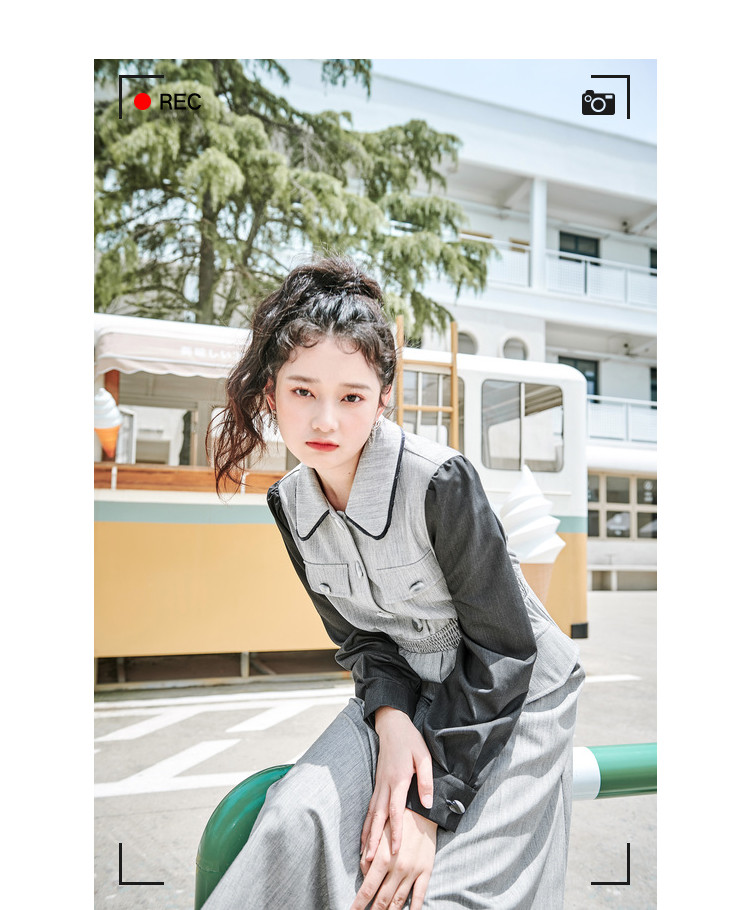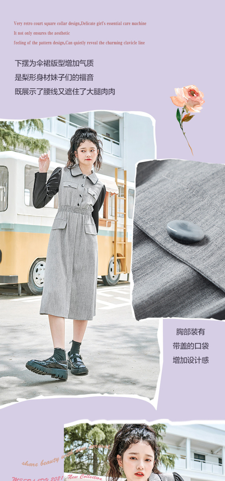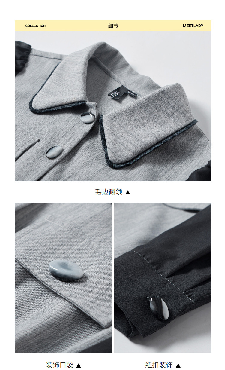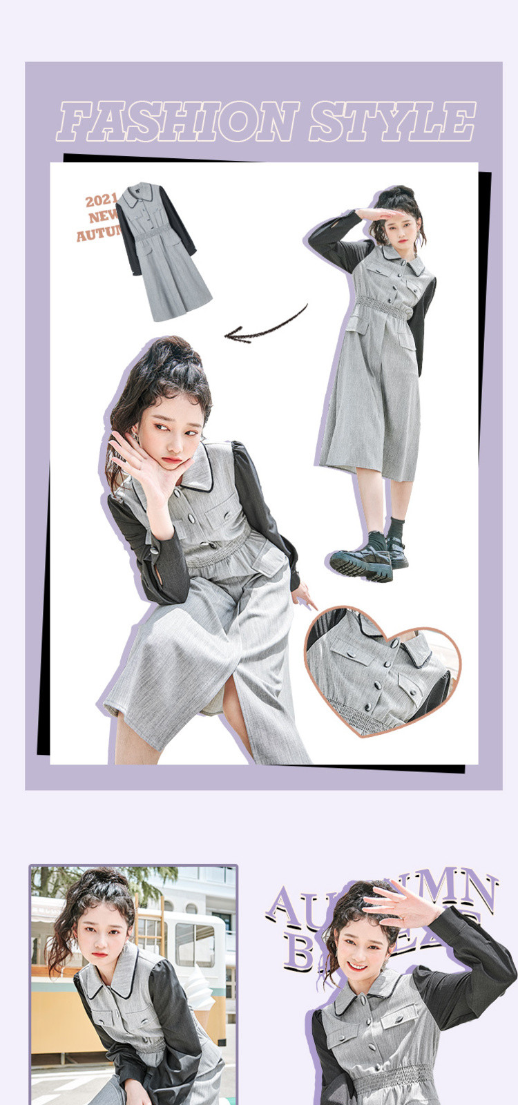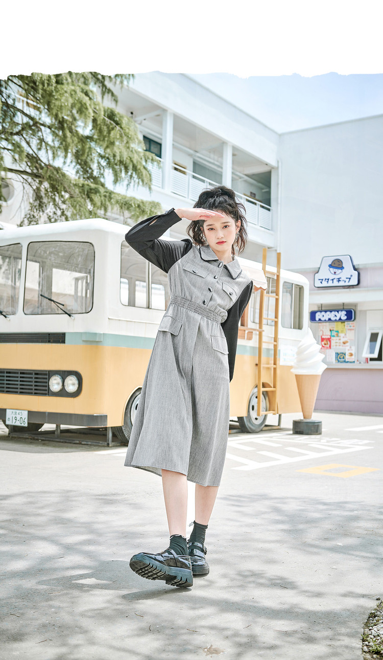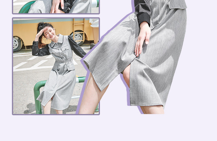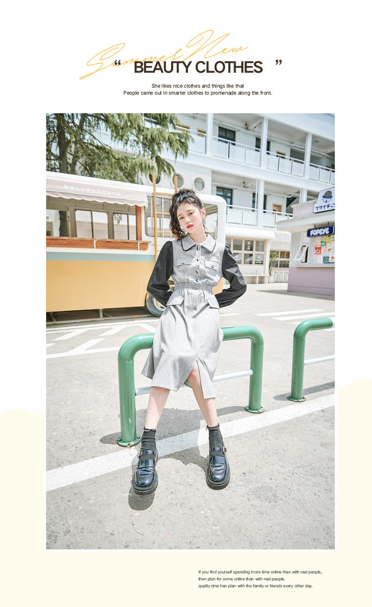 商品名称:春秋复古法式翻领拼接高腰连衣裙女气质收腰衬衫裙 751572