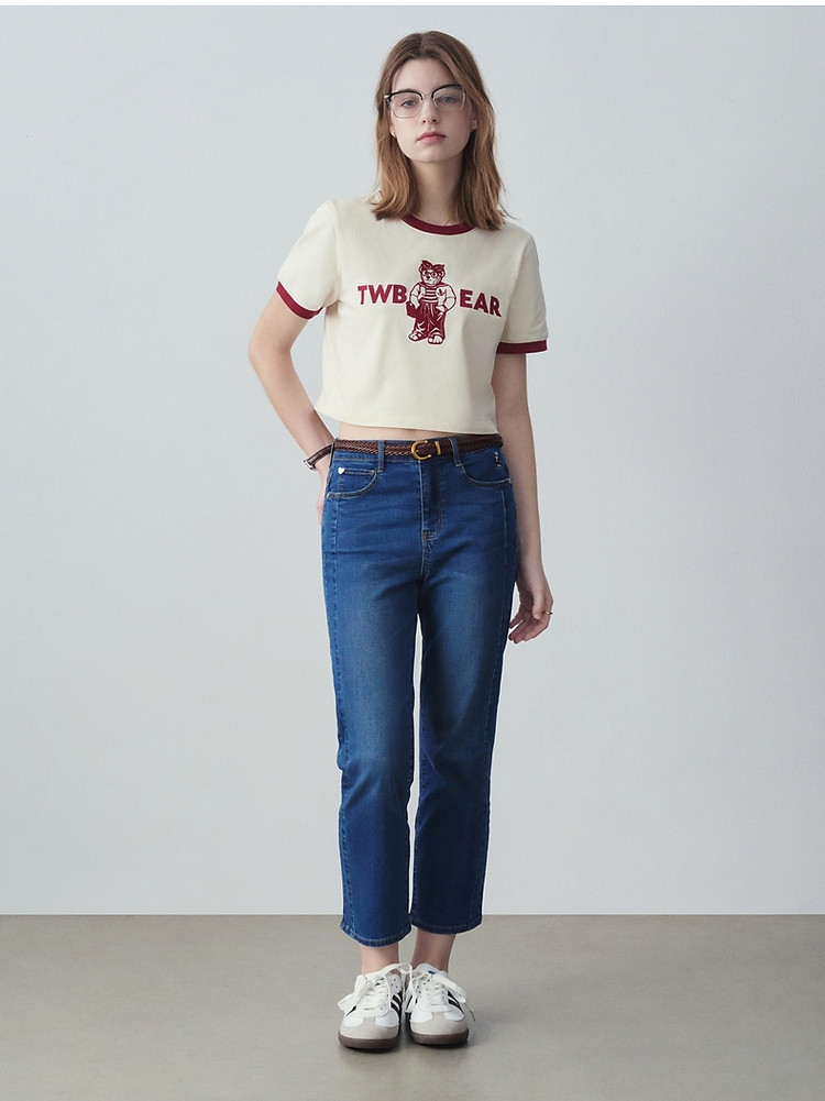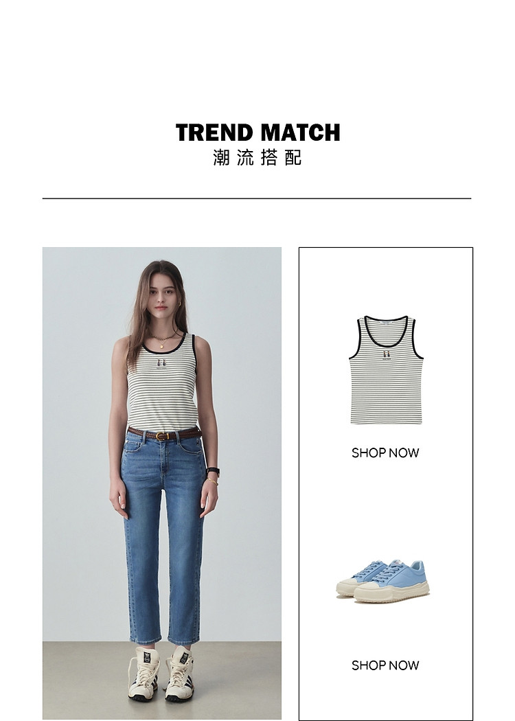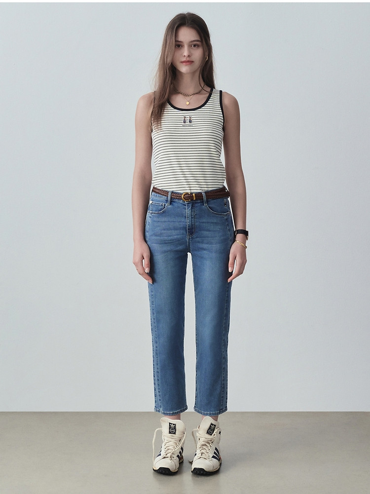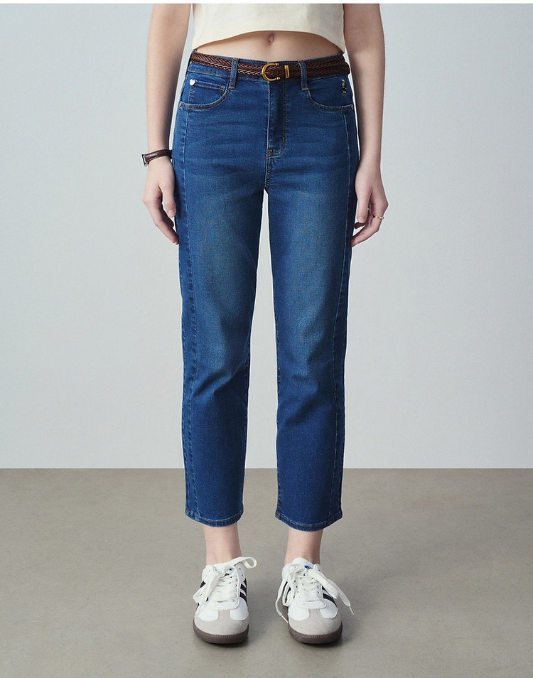 【凉感防晒】小熊秋冬休闲高腰烟管牛仔九分裤女士 785921