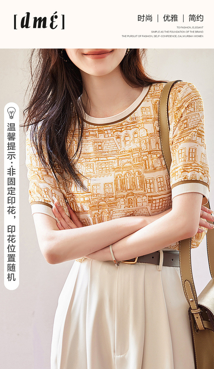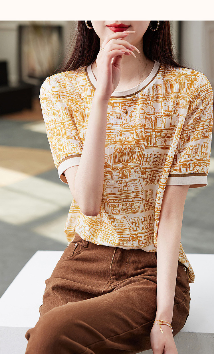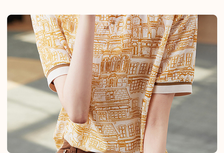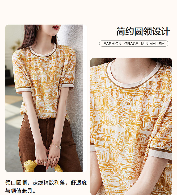 【复合丝花瑶衬衫】夏季圆领短袖合体衬衣女装上衣 083969