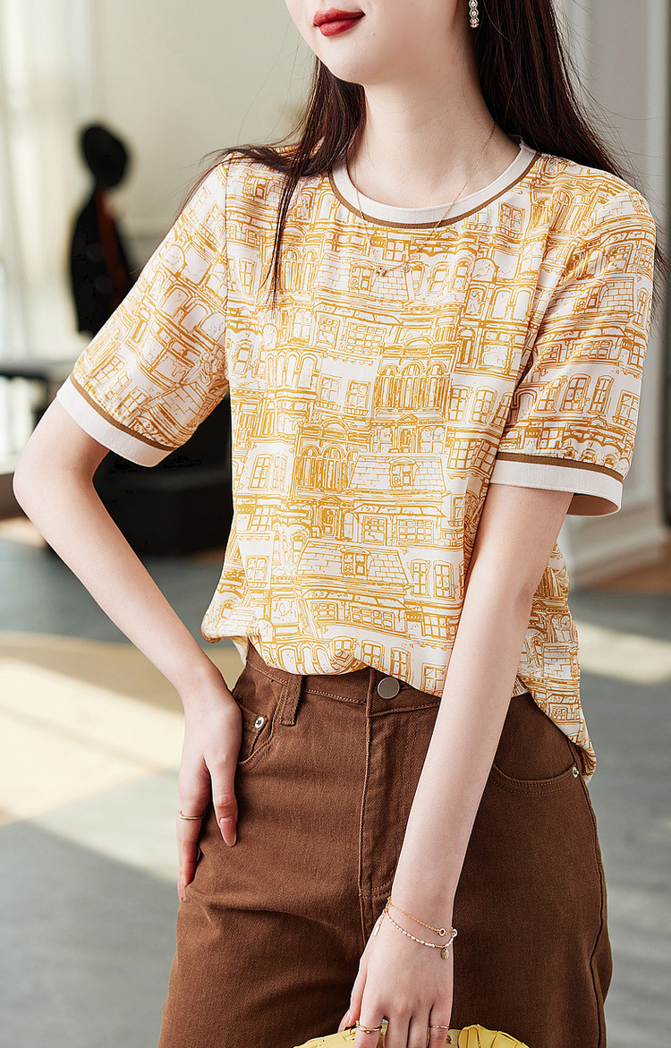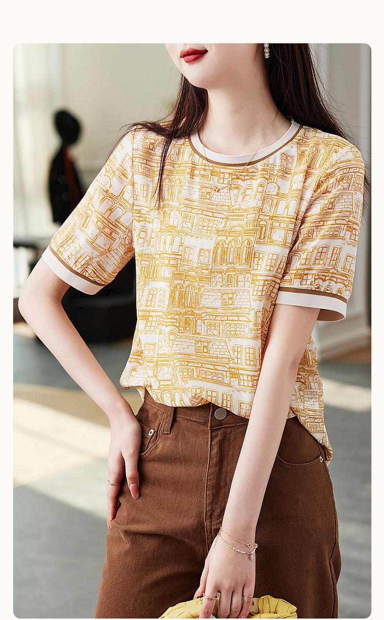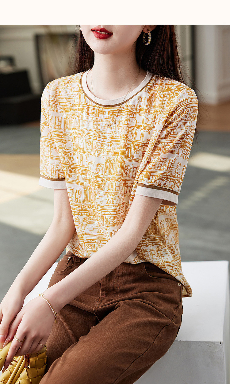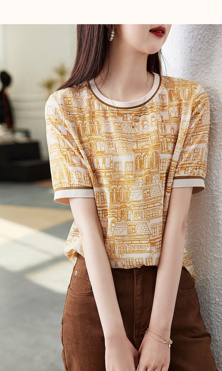 【复合丝花瑶衬衫】夏季圆领短袖合体衬衣女装上衣 083969