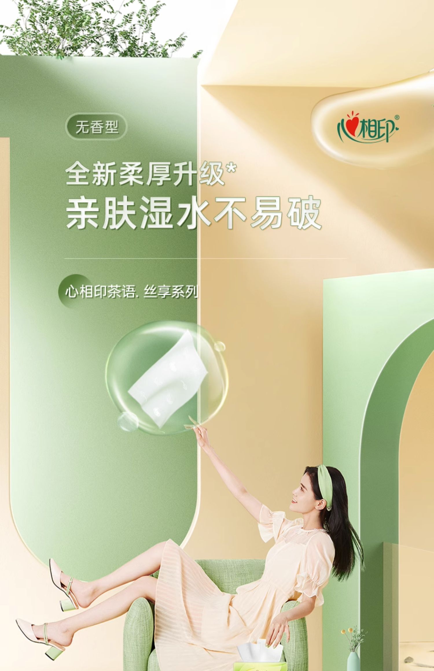 商品名称:4DT32150(提装)心相印茶语丝享系列150抽三层塑装纸面巾3包4提装