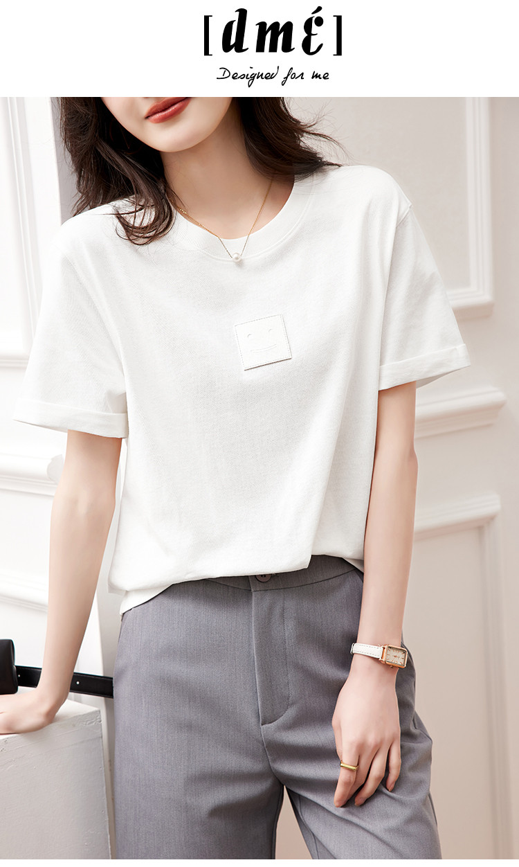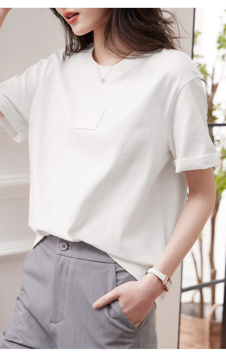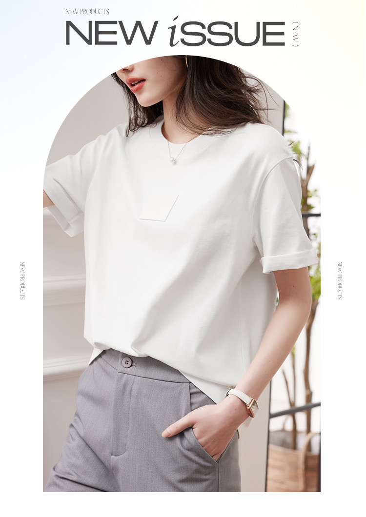 商品名称:【小落肩T恤女】夏季畅销款休闲卷边设计短袖宽松显瘦上衣 686593