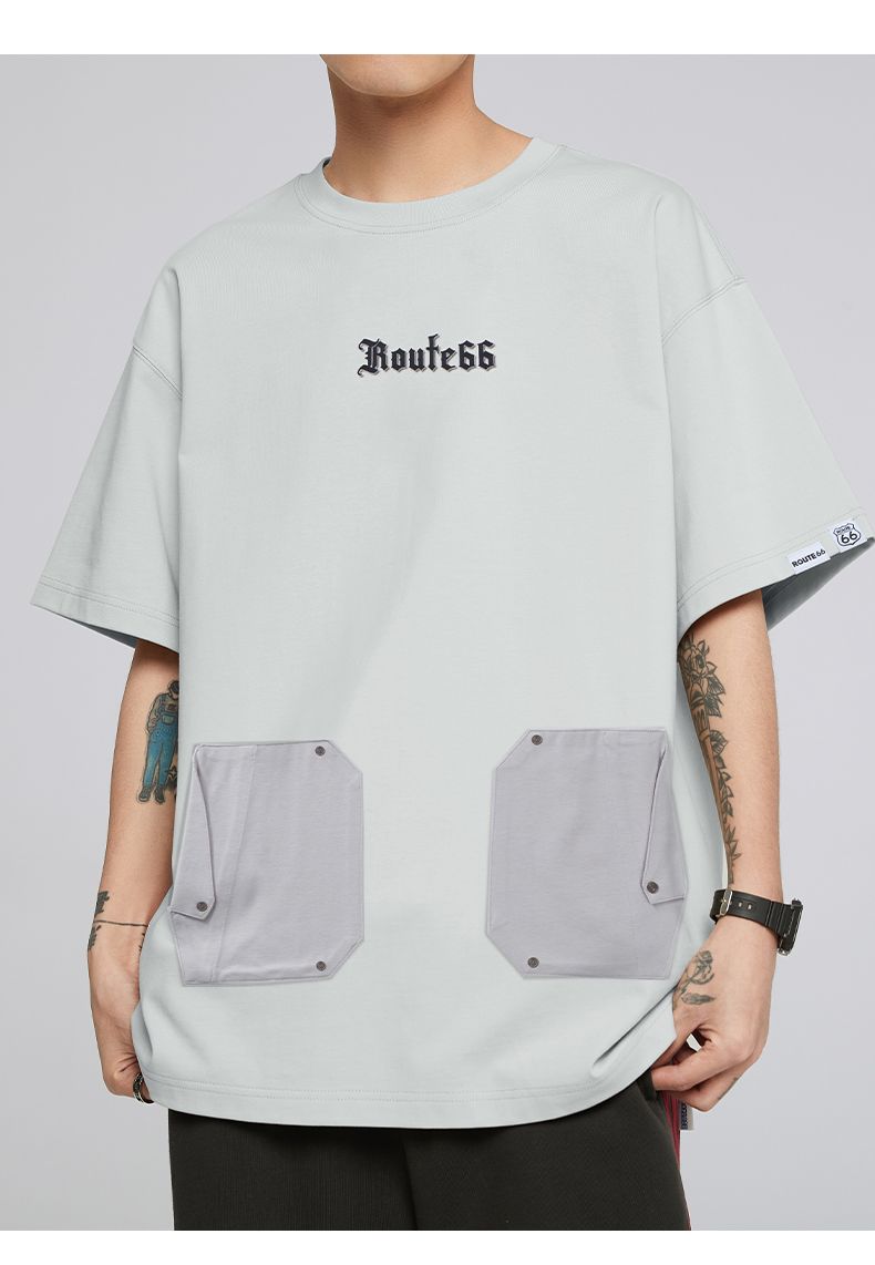 ROUTE66【公装T】系列美式凉感短袖 夏季拼接口袋T恤