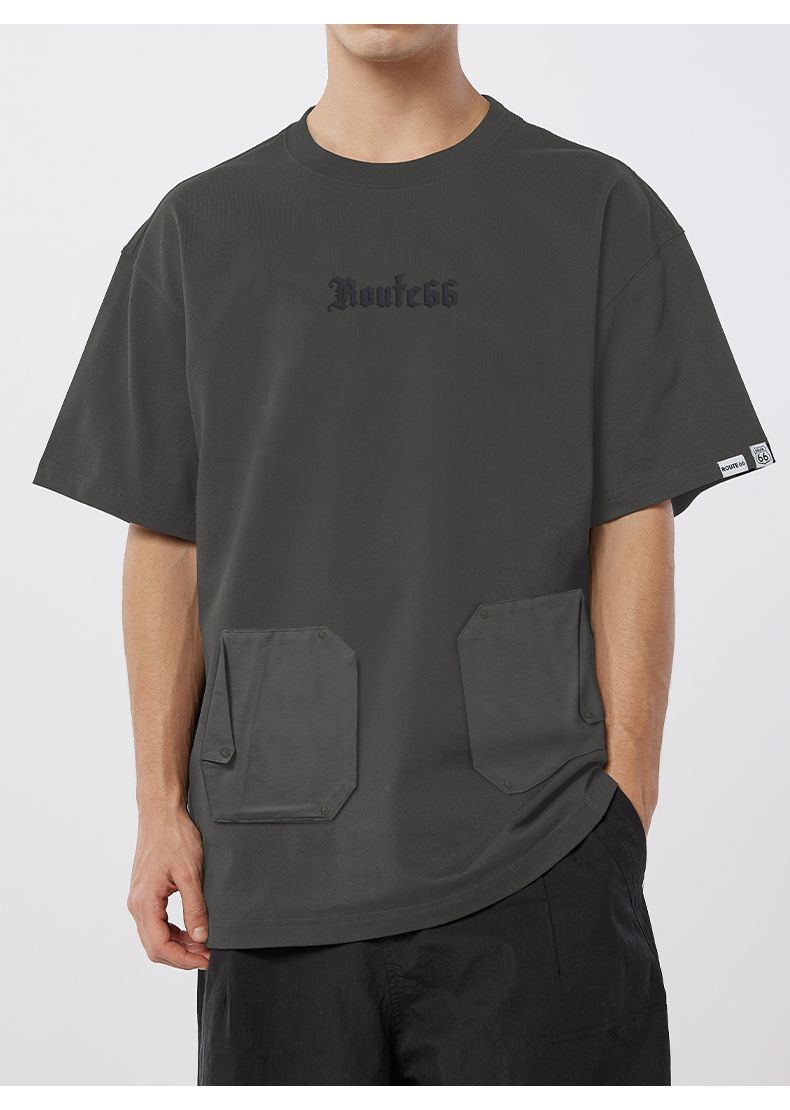 商品名称:ROUTE66【公装T】系列美式凉感短袖 夏季拼接口袋T恤