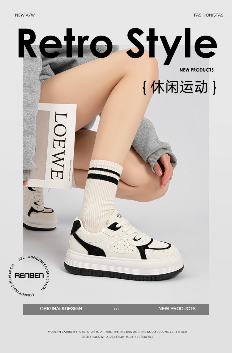 【舒适休闲鞋女】25春季轻便高颜值小白鞋时尚百搭潮流厚底板鞋 231191