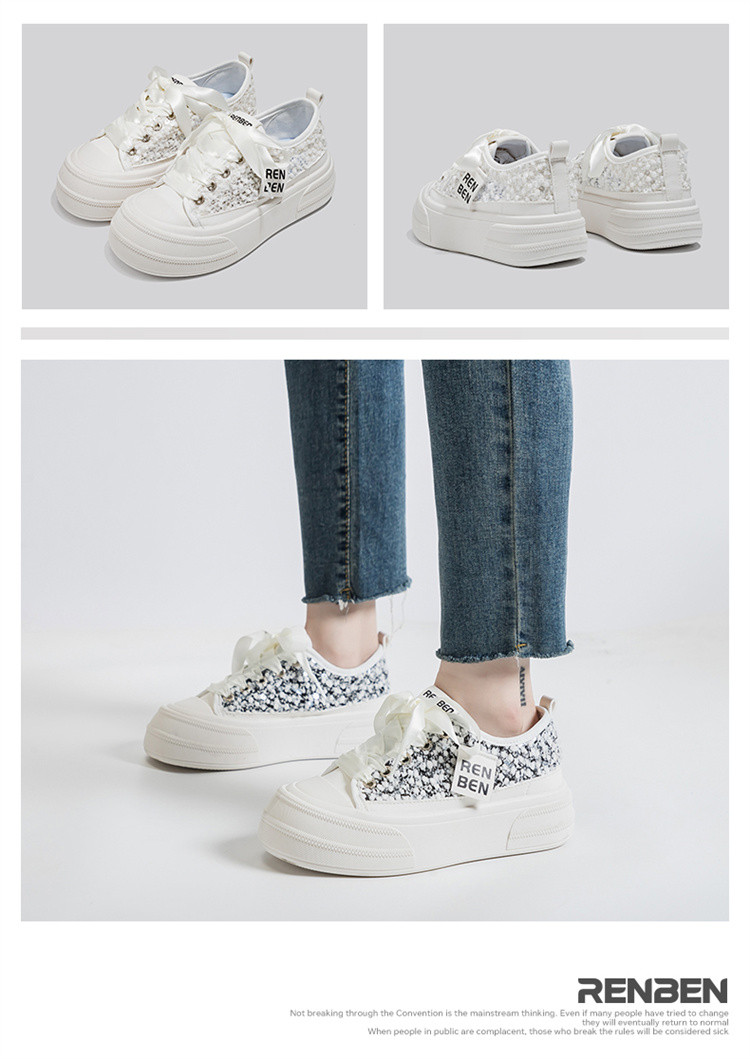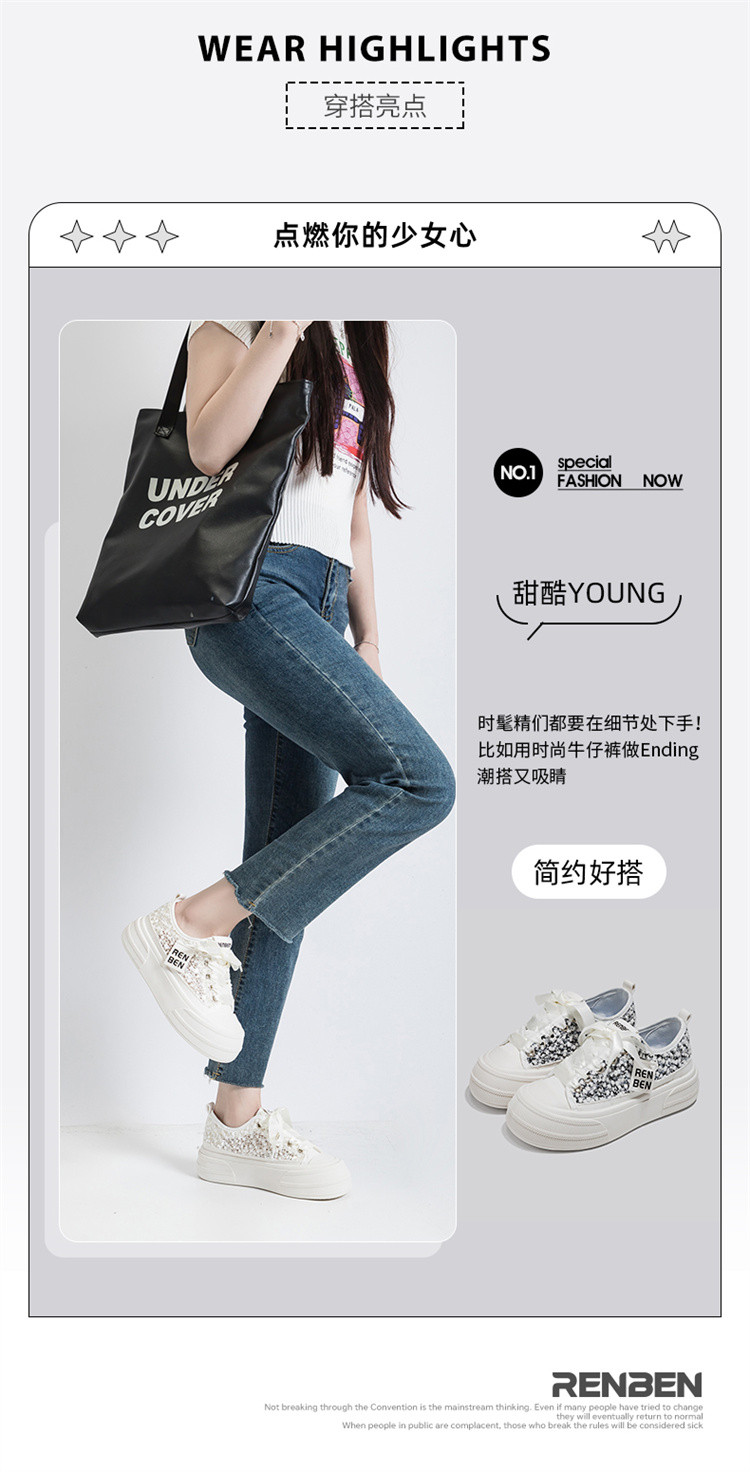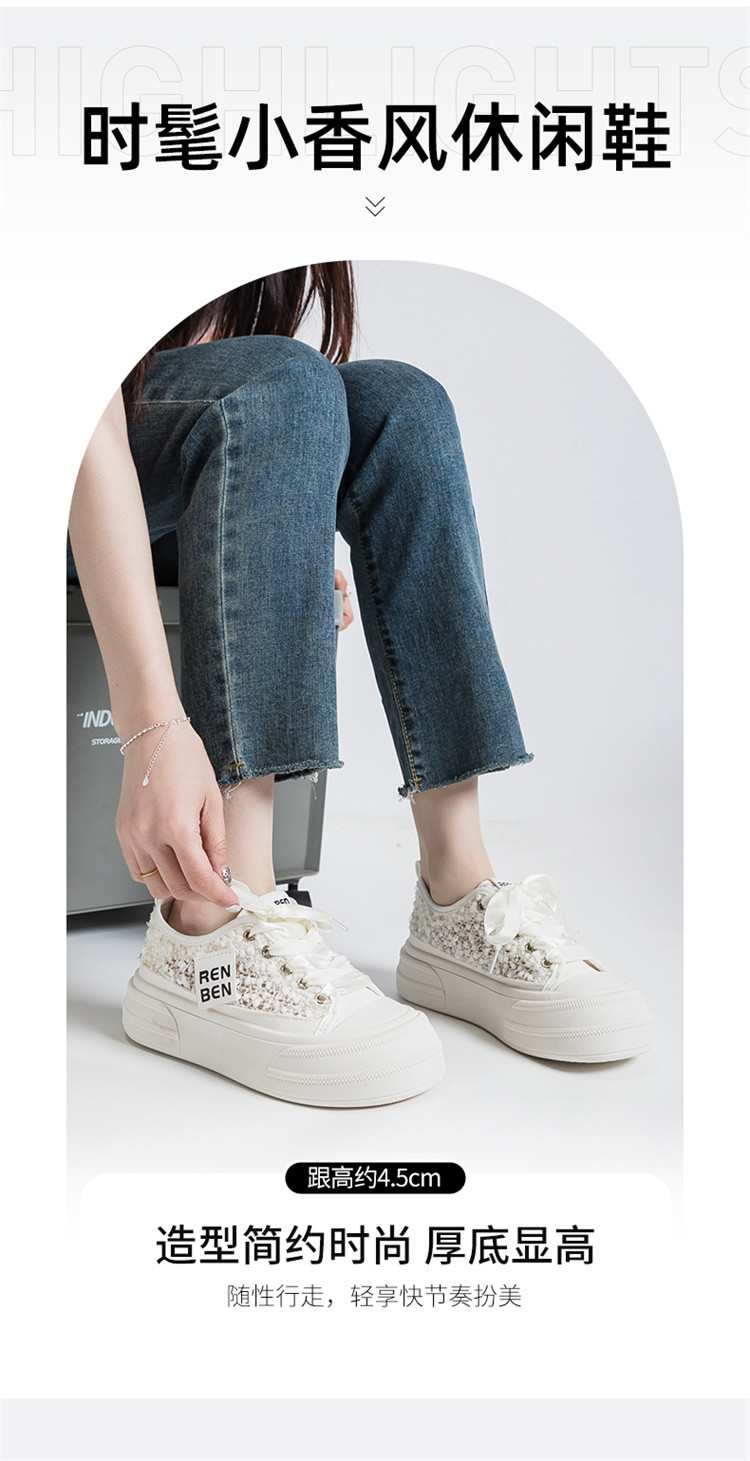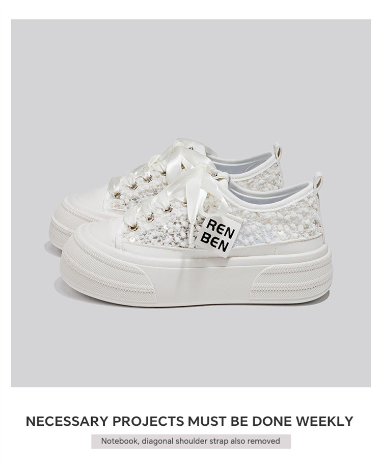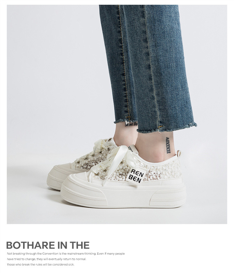 商品名称:夏季镂空板鞋女厚底增高休闲运动鞋小香风百搭透气网纱小白鞋女 933575