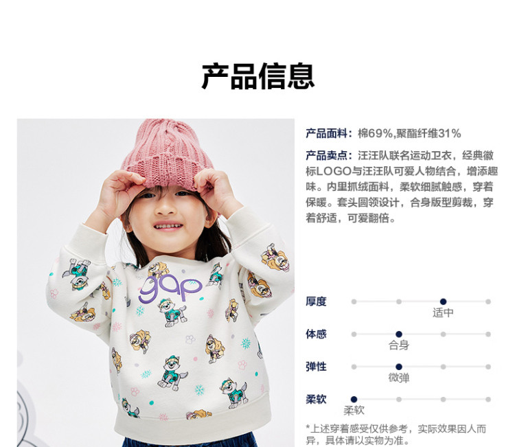 商品名称:【汪汪队联名】Gap女幼童春季洋气运动卫衣抓绒保暖上衣847232 478746