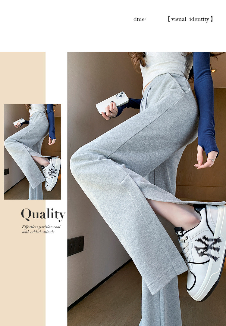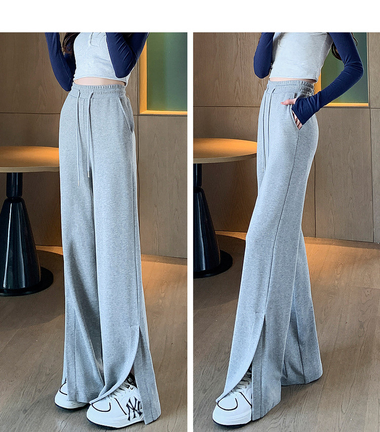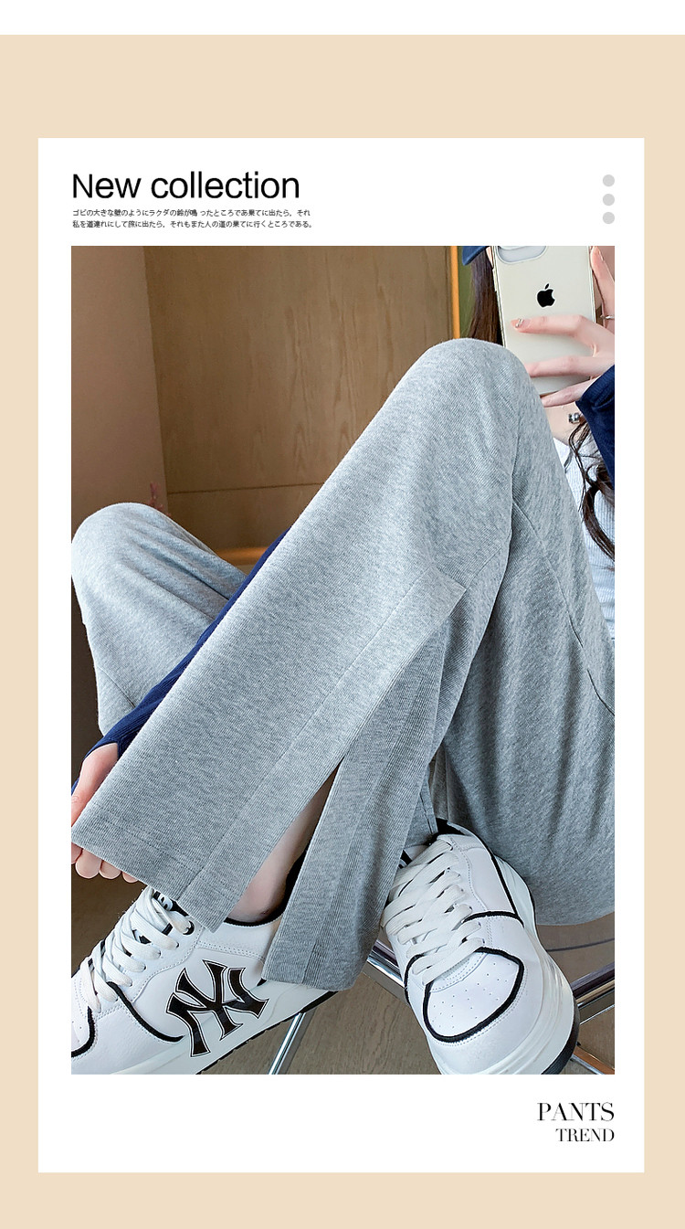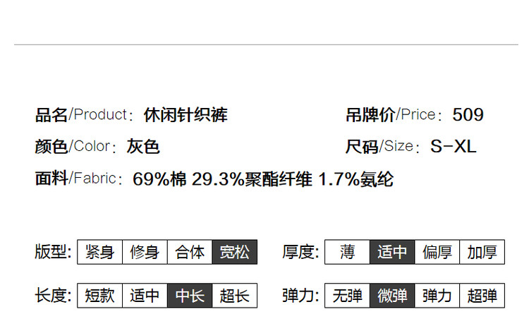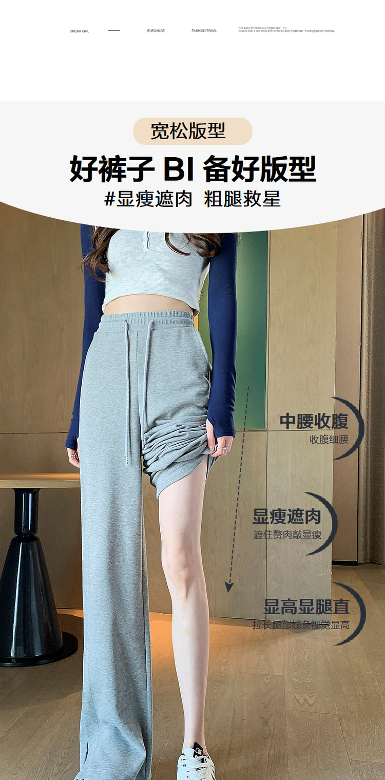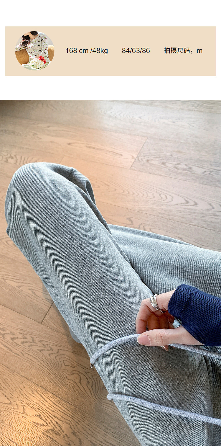 商品名称:【针织长裤】春秋季通勤女裤抽绳松紧腰直筒休闲阔腿裤女 462977