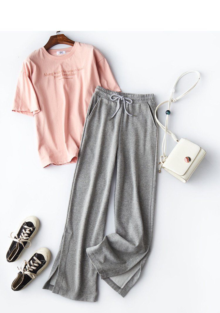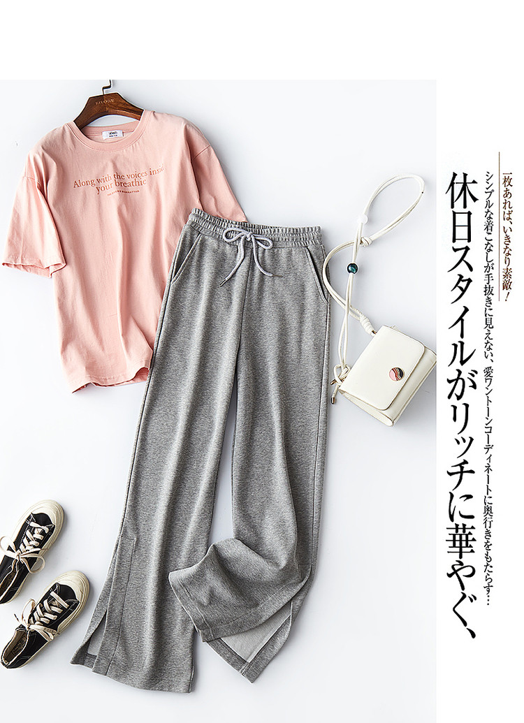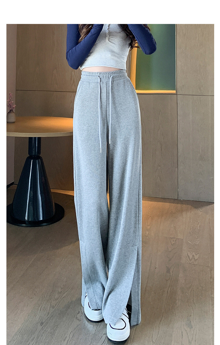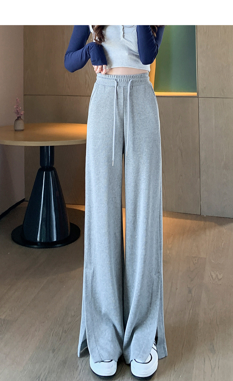 【针织长裤】春秋季通勤女裤抽绳松紧腰直筒休闲阔腿裤女 462977