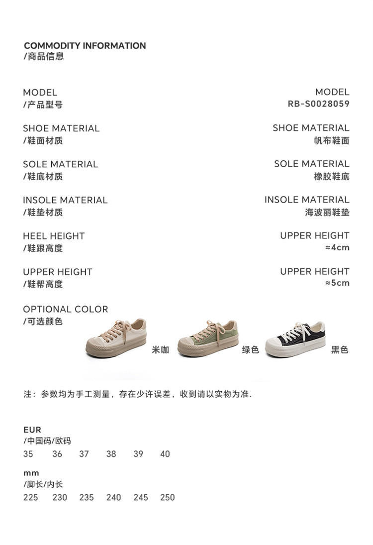 商品名称:【透气帆布鞋】2025女鞋春夏百搭透气板鞋女厚底运动休闲鞋女 769991