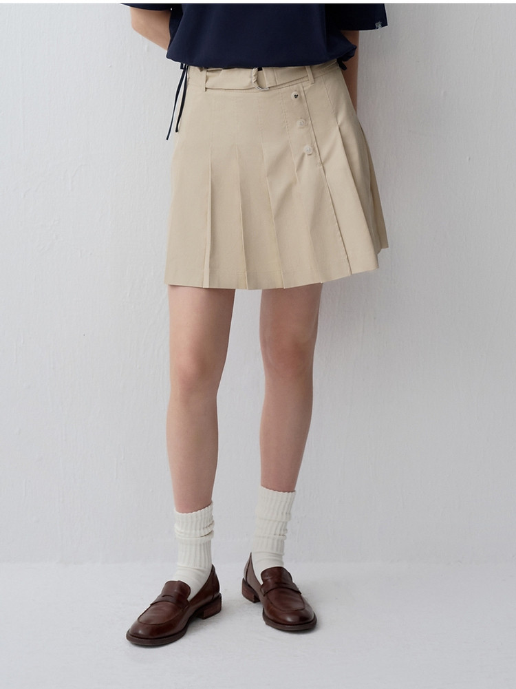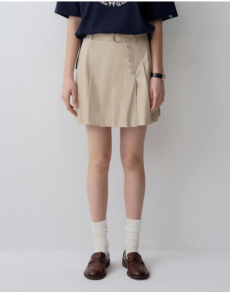 【易打理】小熊夏季款高腰系带百褶裙A字裙女士 202049
