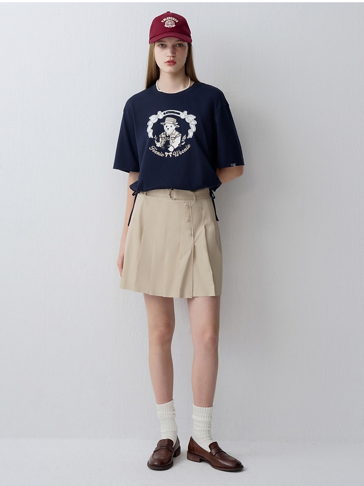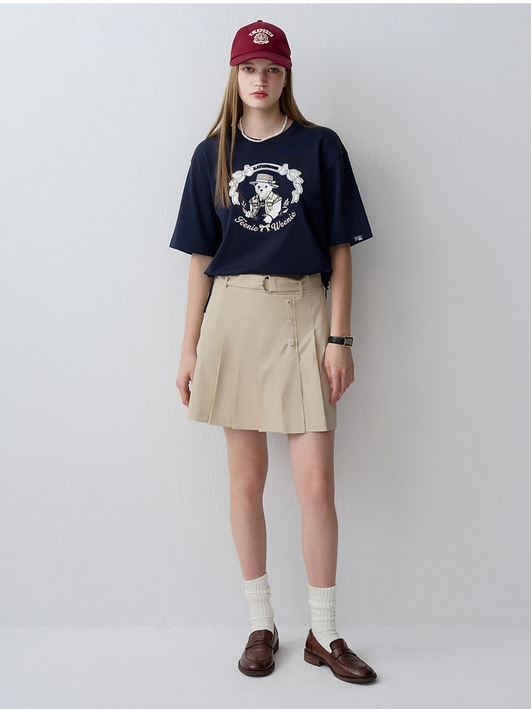 商品名称:【易打理】小熊夏季款高腰系带百褶裙A字裙女士 202049