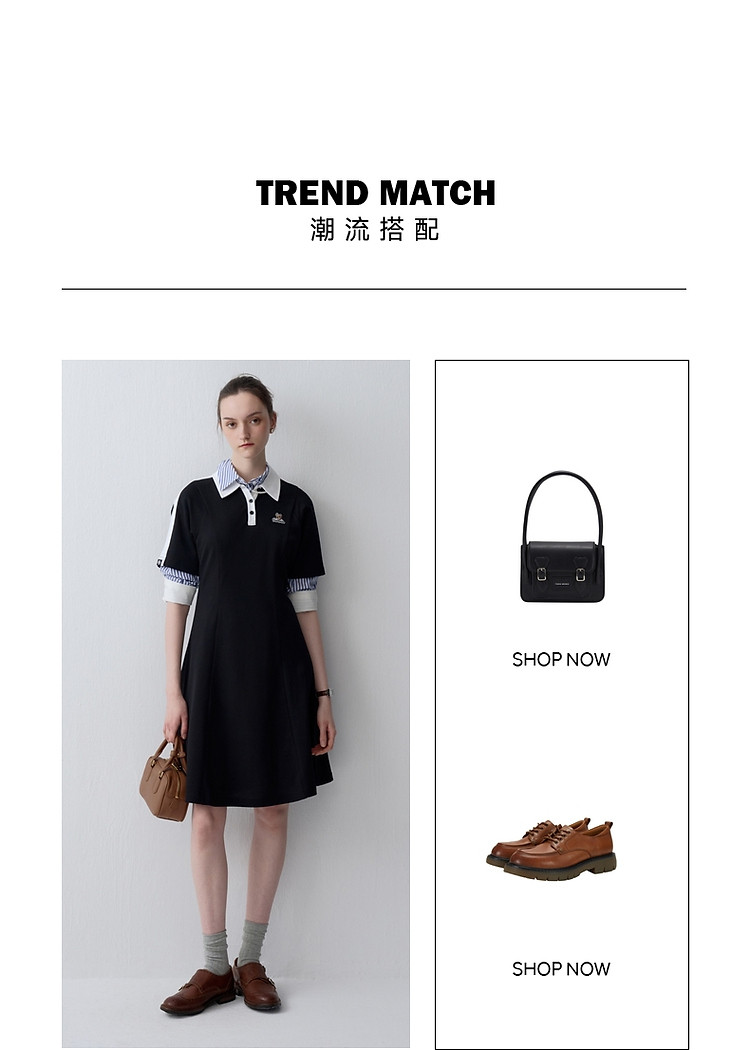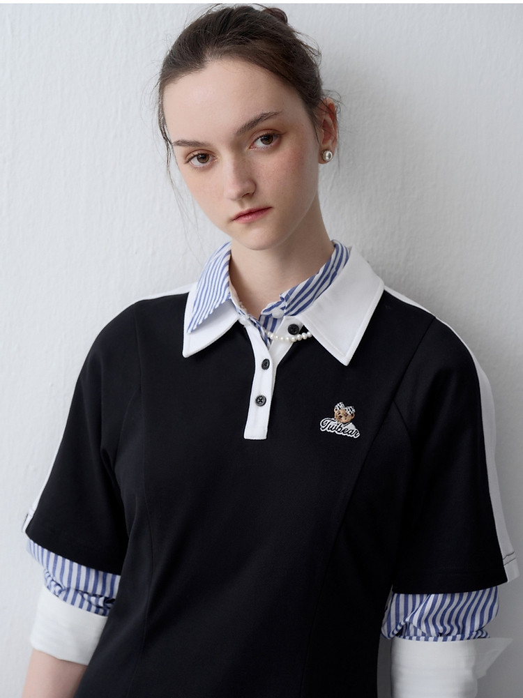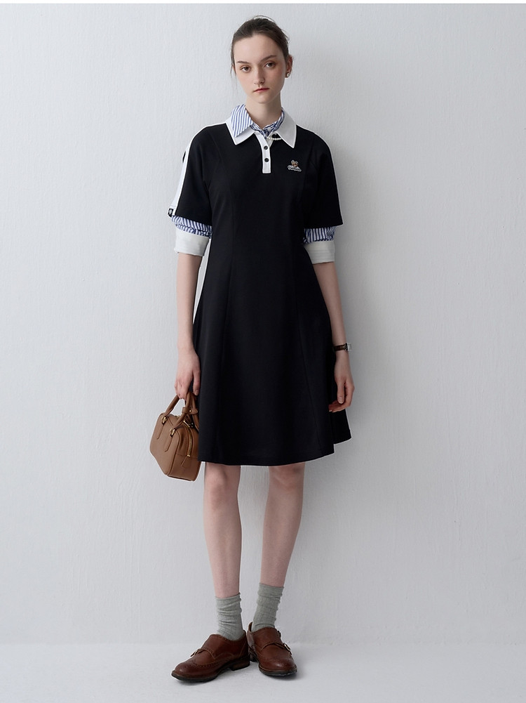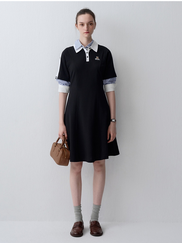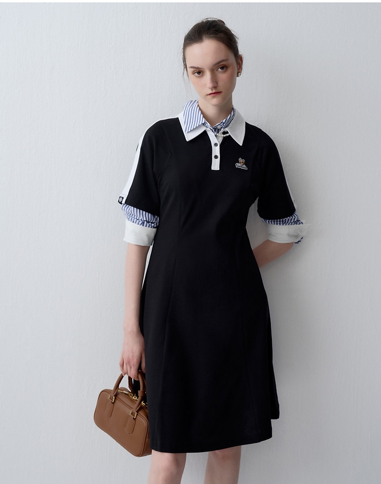 商品名称:小熊女装时尚简约夏季复古运动风微A撞色Polo连衣裙 605377