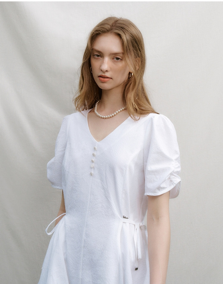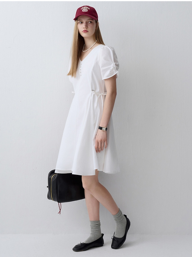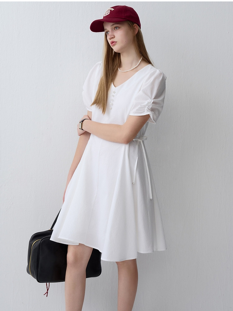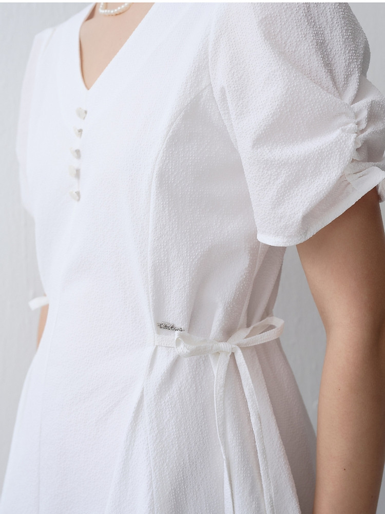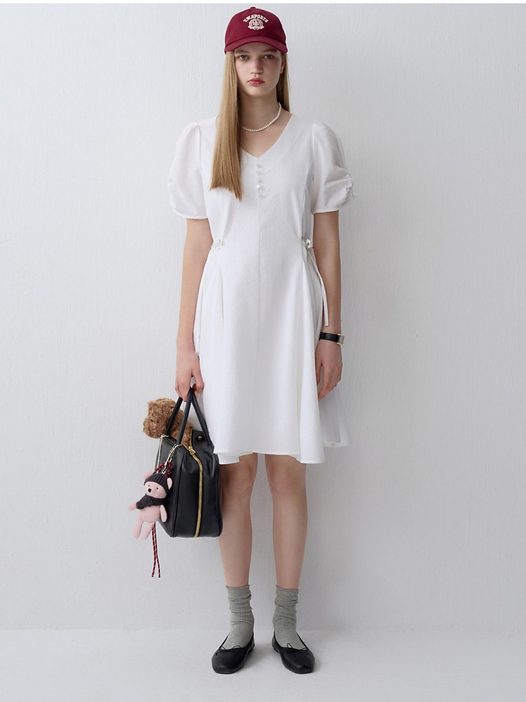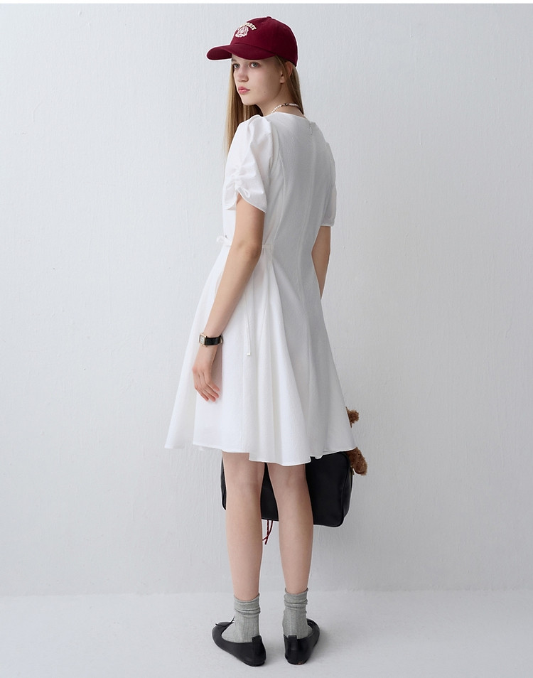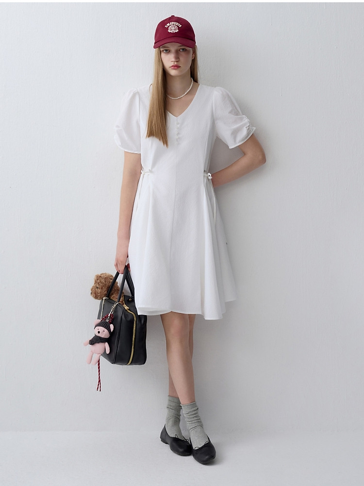 商品名称:连衣裙【 明星同款】小熊夏季款泡泡纱收腰少女装连衣裙女装 435905