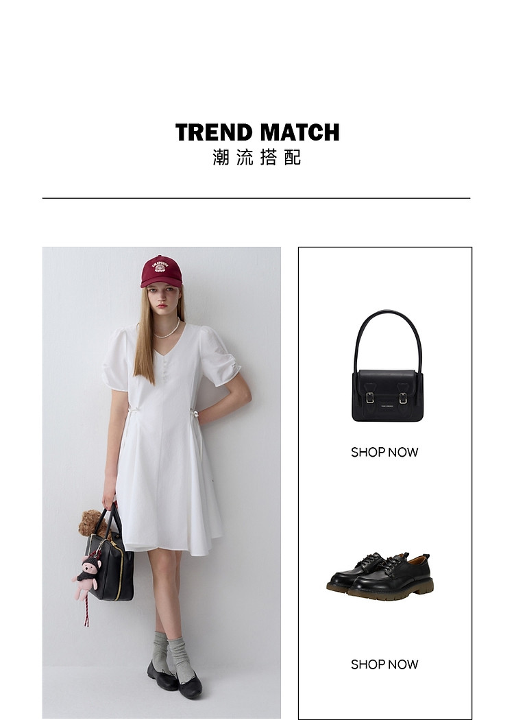 连衣裙【 明星同款】小熊夏季款泡泡纱收腰少女装连衣裙女装 435905