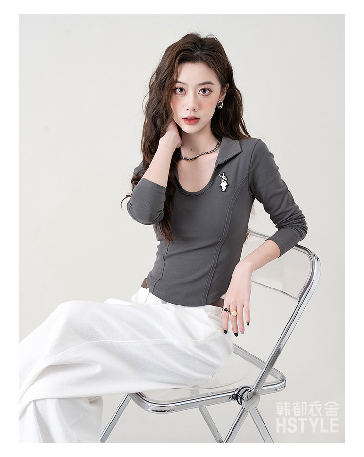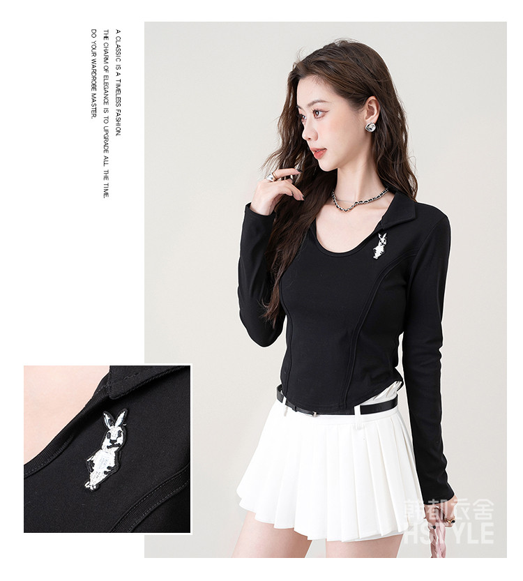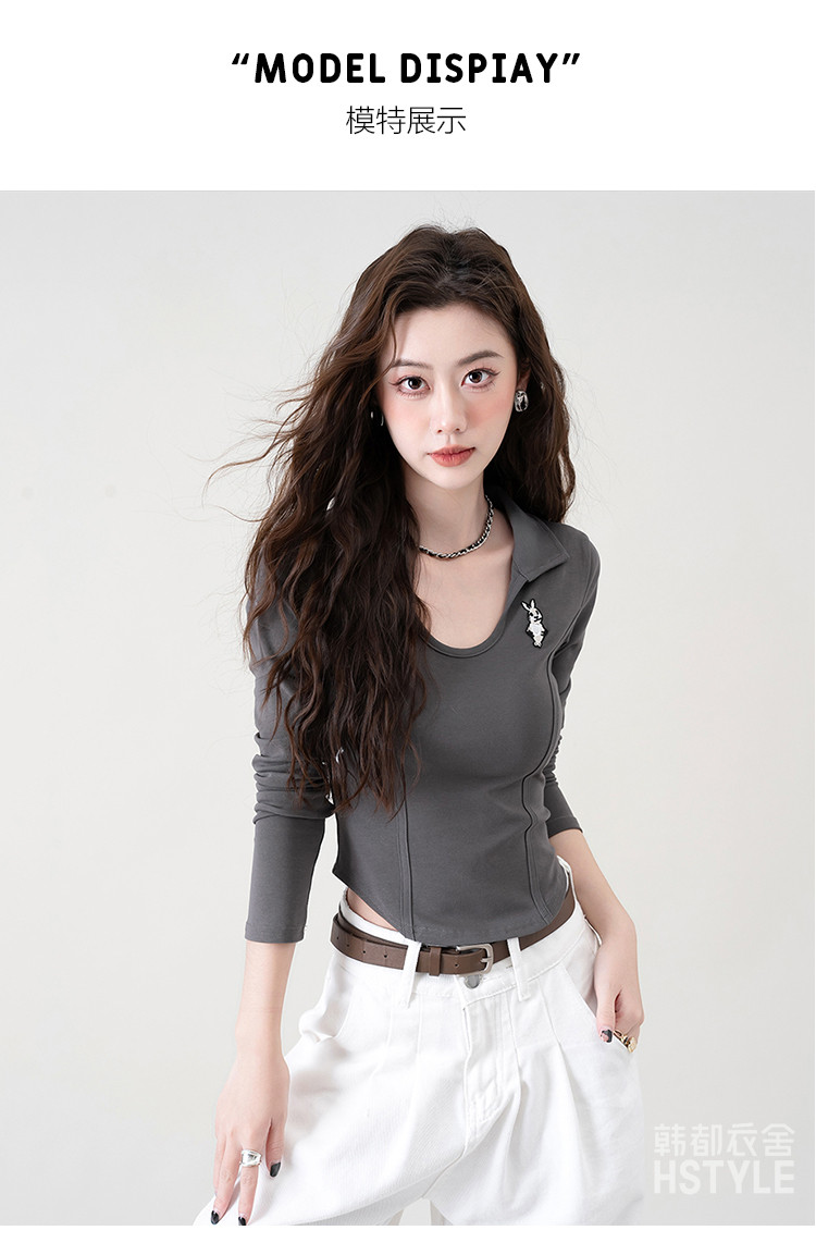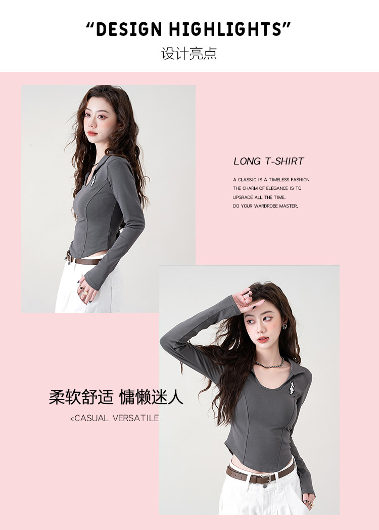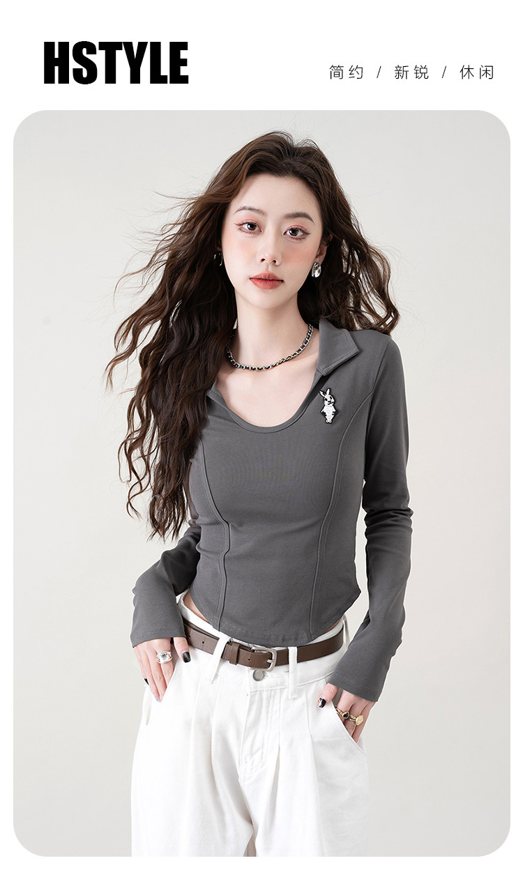 商品名称:【U型翻领圆弧下摆】春季款长袖女性感打底衫女式t恤 320267