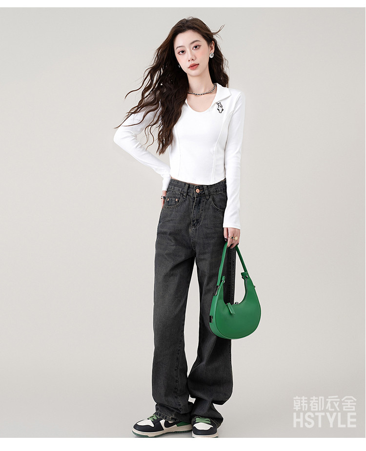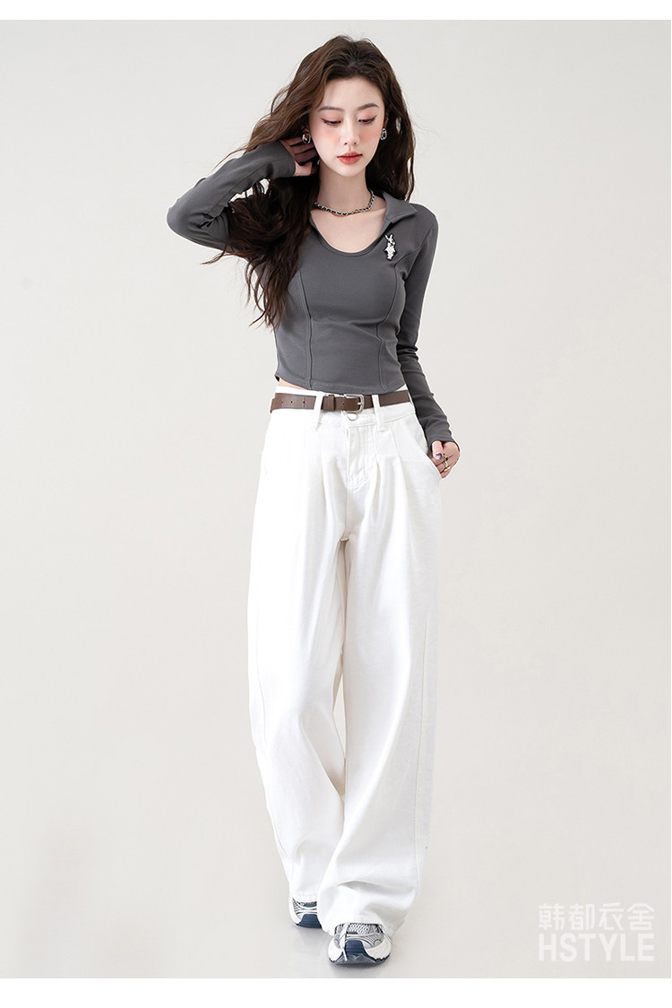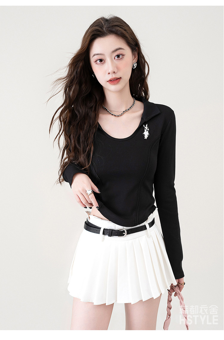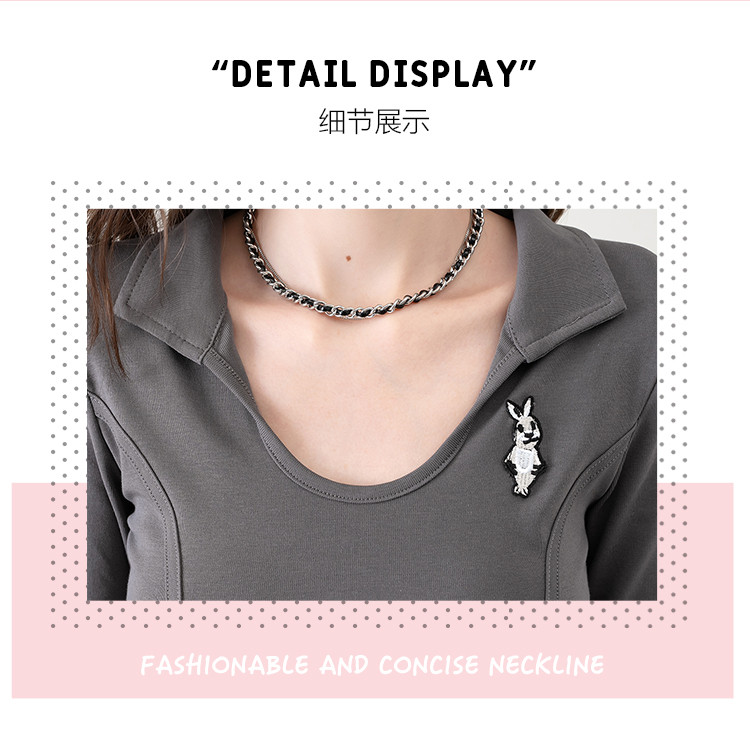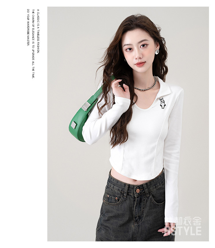 商品名称:【U型翻领圆弧下摆】春季款长袖女性感打底衫女式t恤 320267