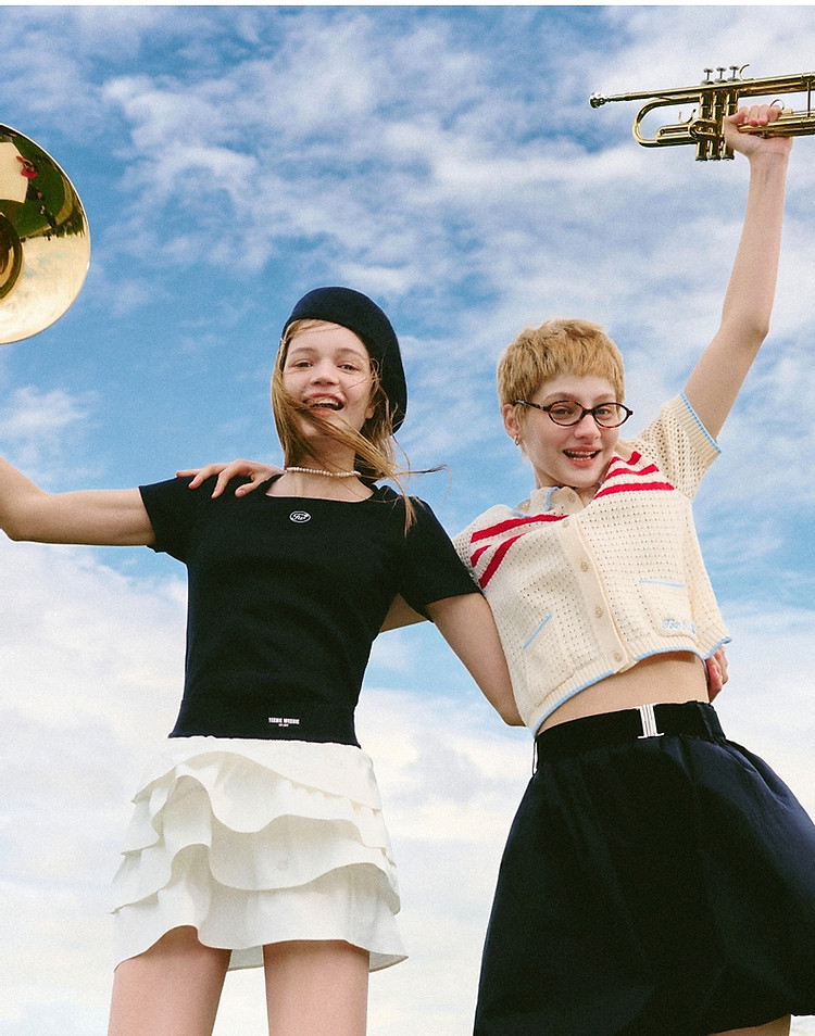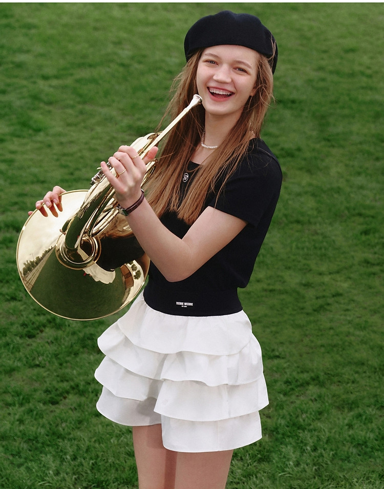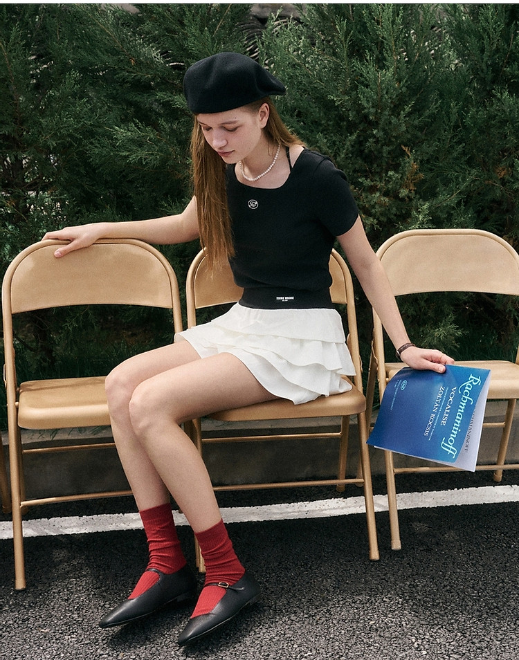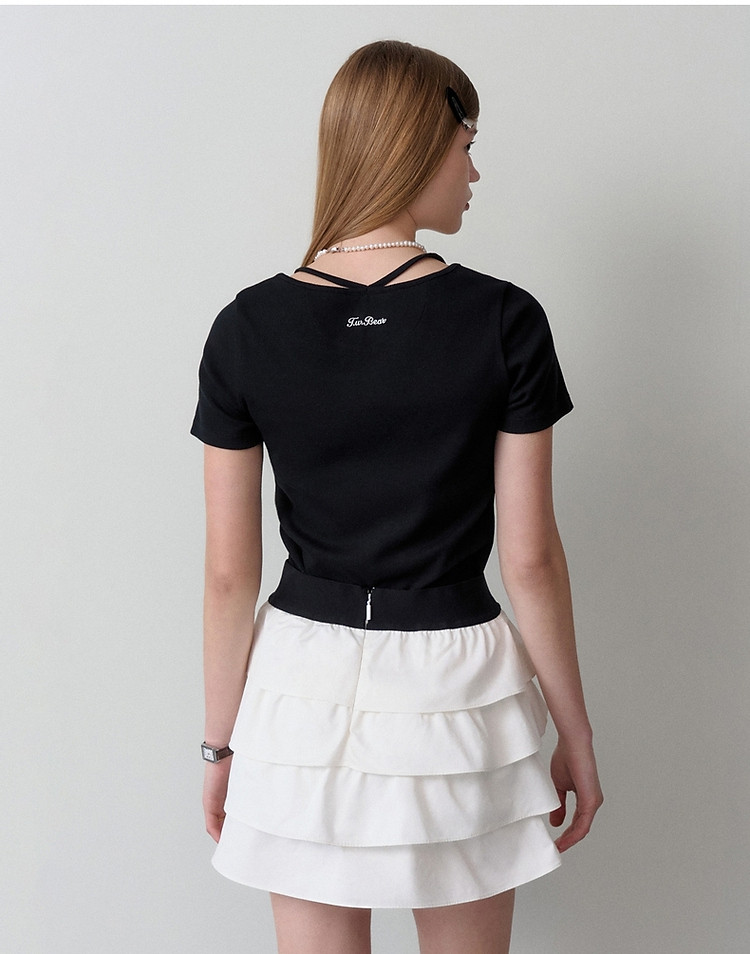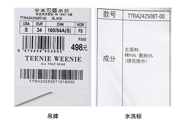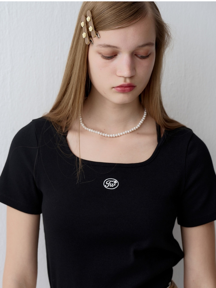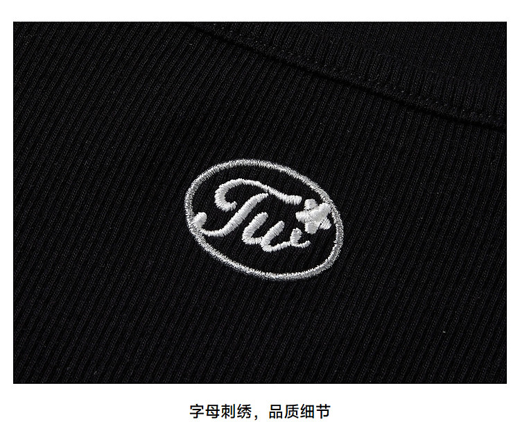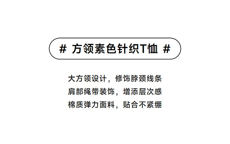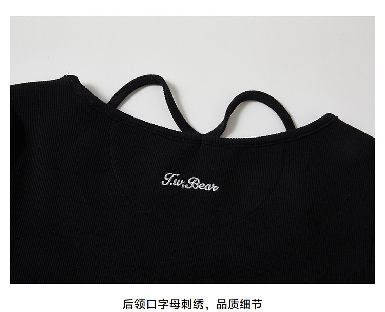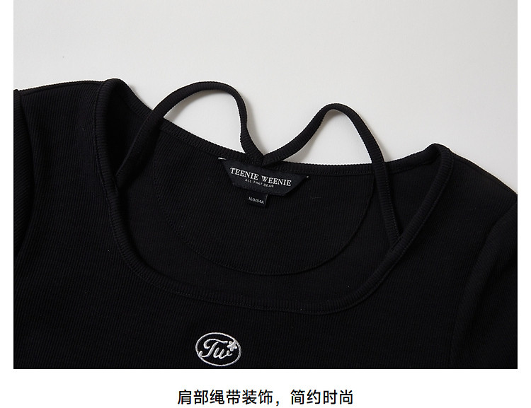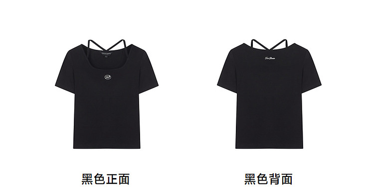 商品名称:小熊夏季款方领针织短袖黑色T恤设计感时尚女士 792513