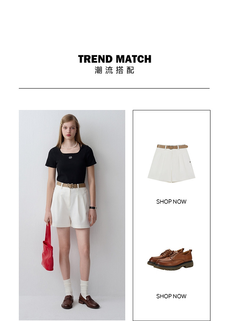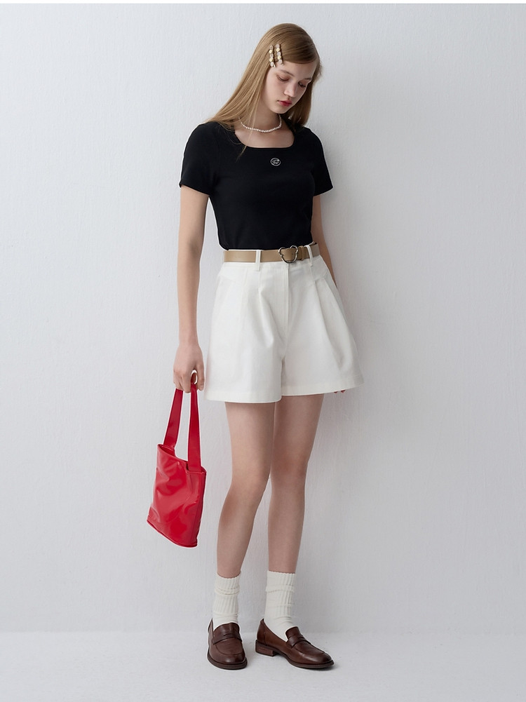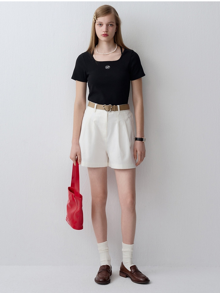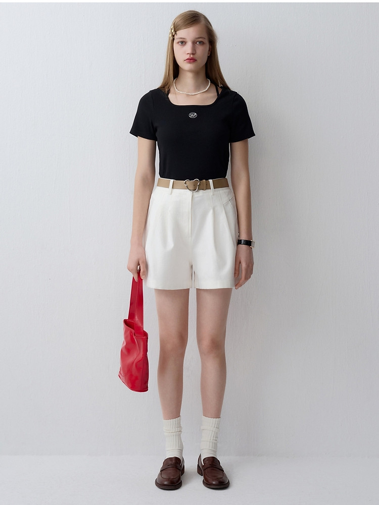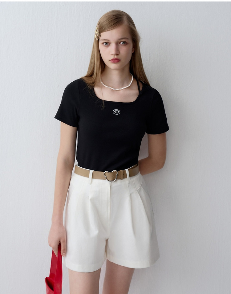 小熊夏季款方领针织短袖黑色T恤设计感时尚女士 792513