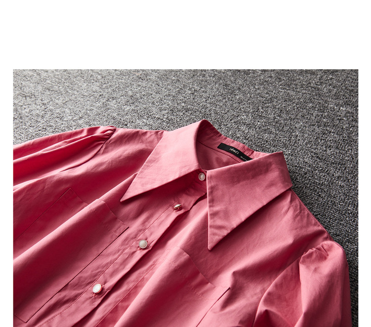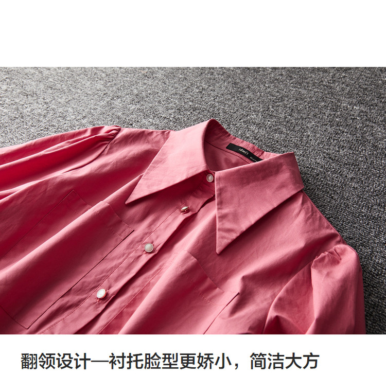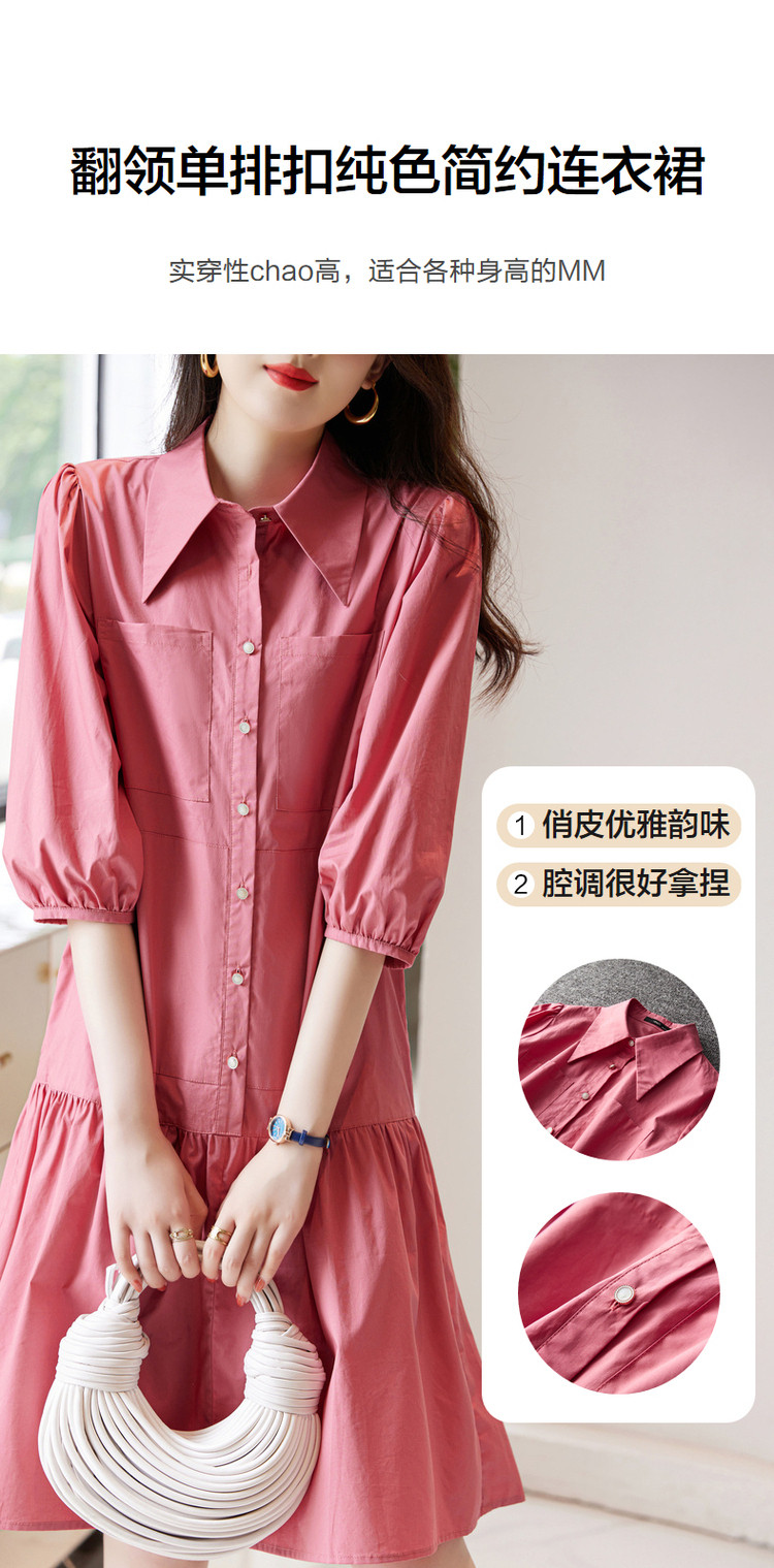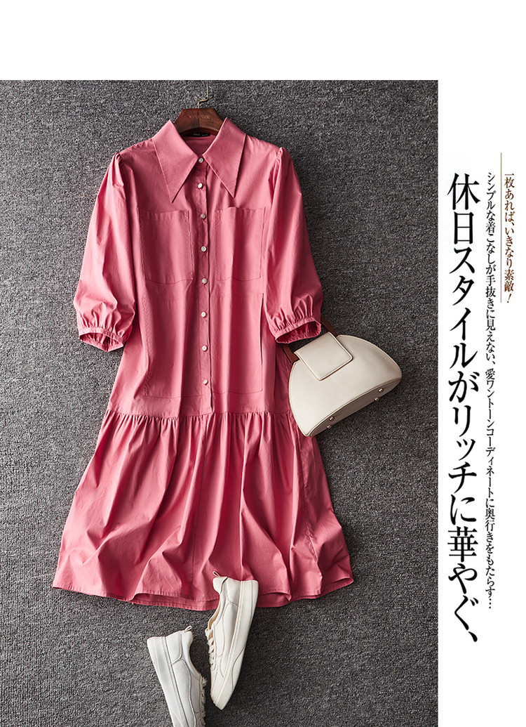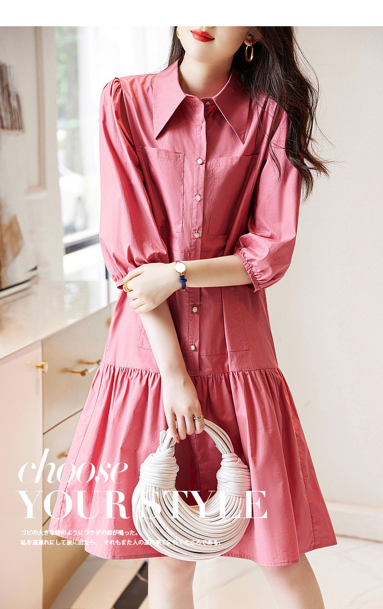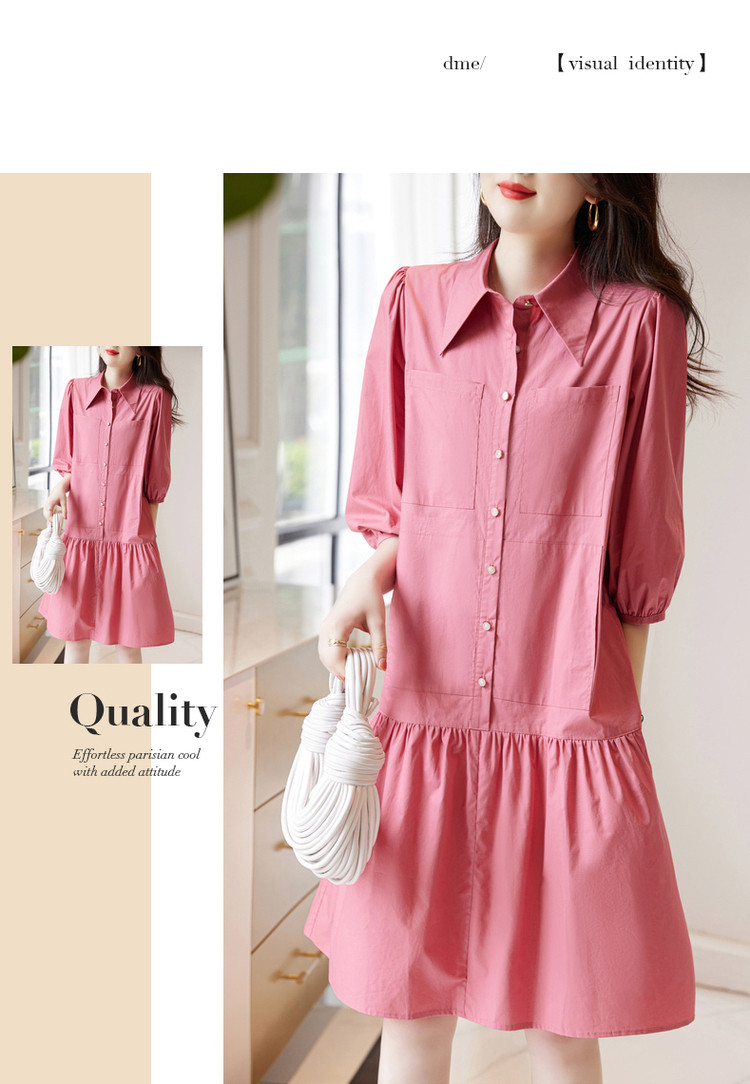 【a字娃娃裙】春秋翻领宽松七分袖抽褶简约中腰连衣裙女 015809