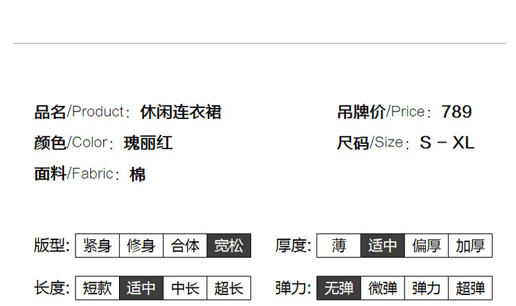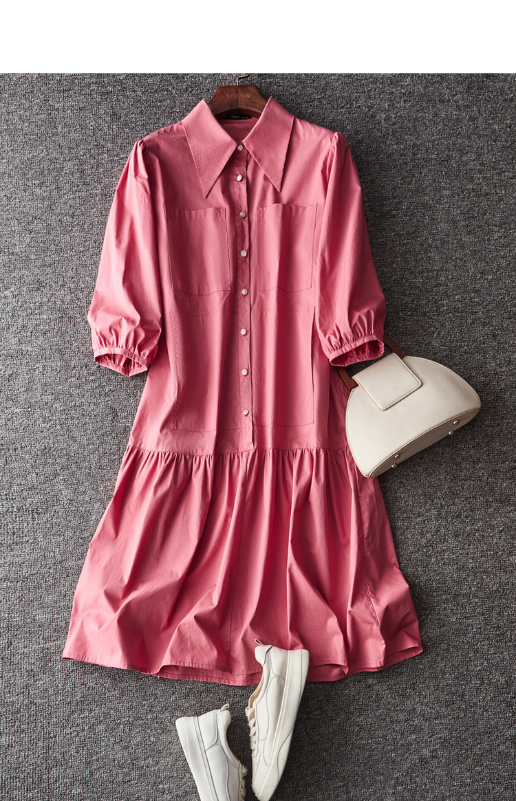 商品名称:【a字娃娃裙】春秋翻领宽松七分袖抽褶简约中腰连衣裙女 015809