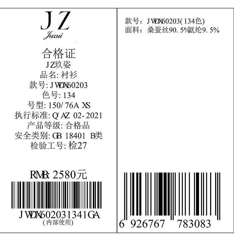 商品名称:JZ玖姿商场同款轻熟风桑蚕丝弹力缎衬衫夏季JWDX60203 472396