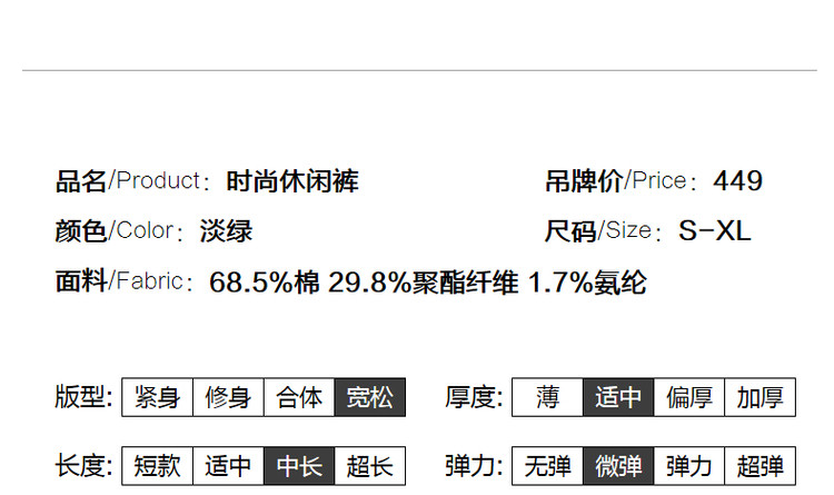商品名称:【通勤休闲裤】季宽松女裤中腰直筒松紧裤子女秋 418305