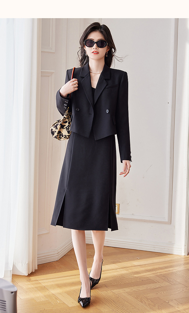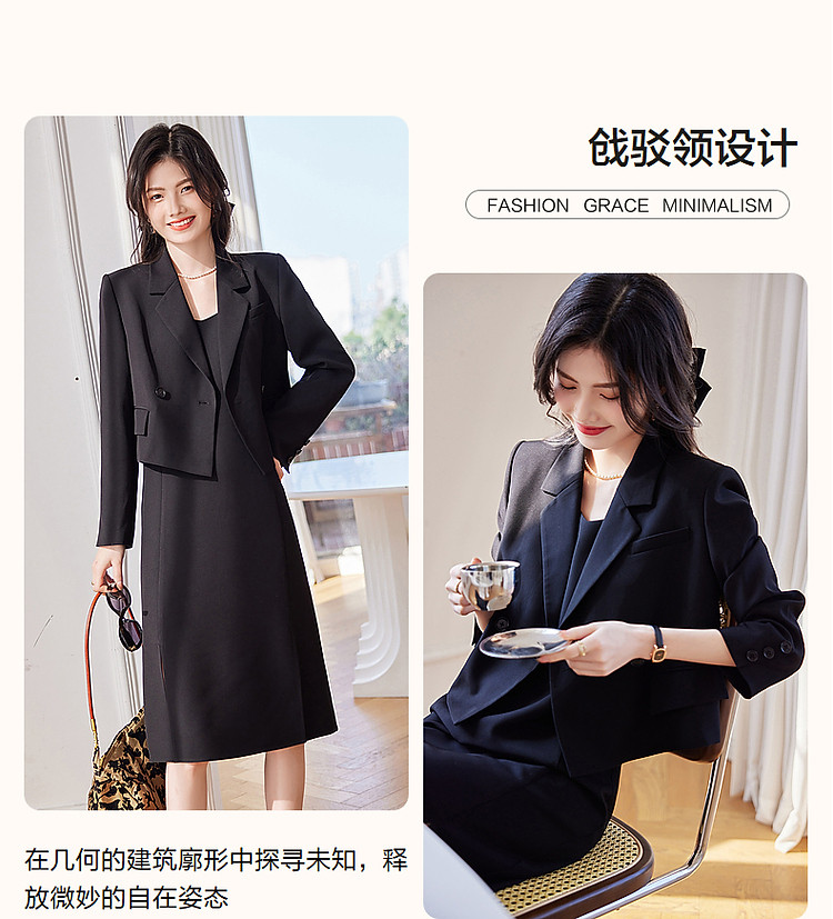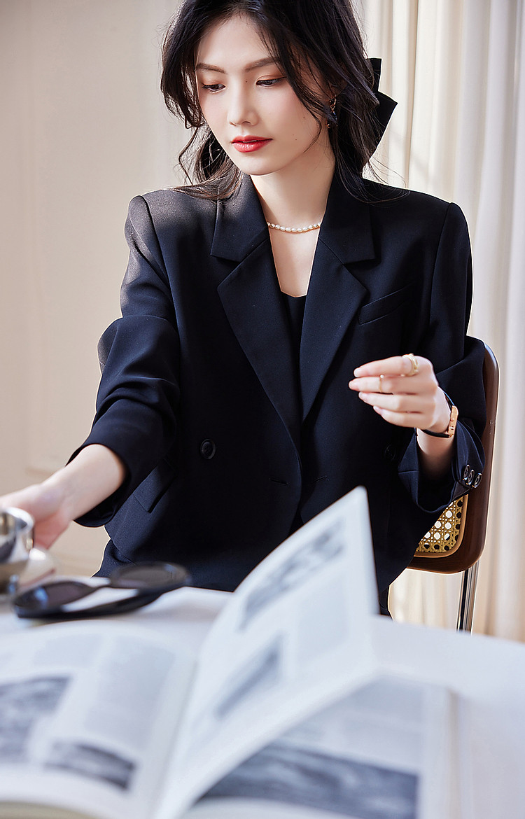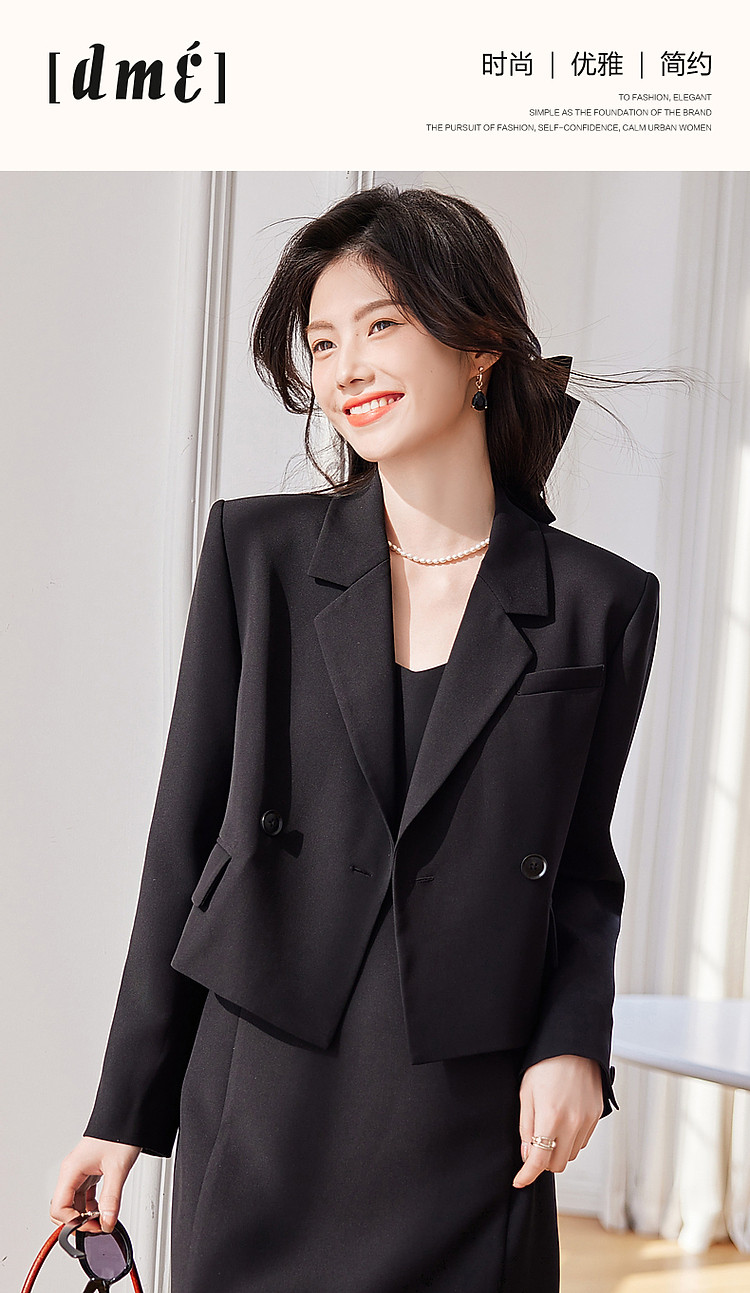 【通勤轻奢西装外套】春秋戗驳领双排扣西服外套女短款 110593
