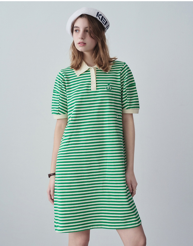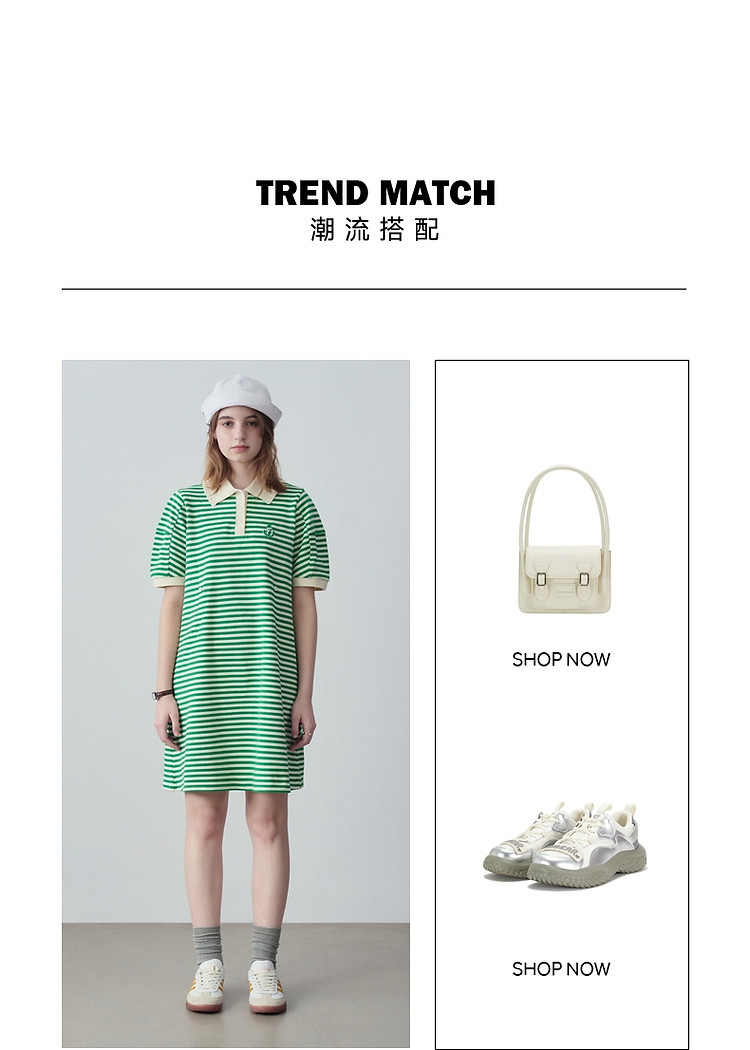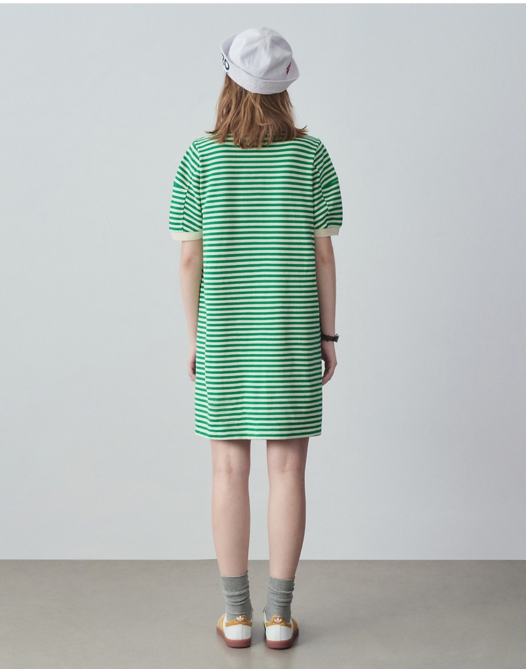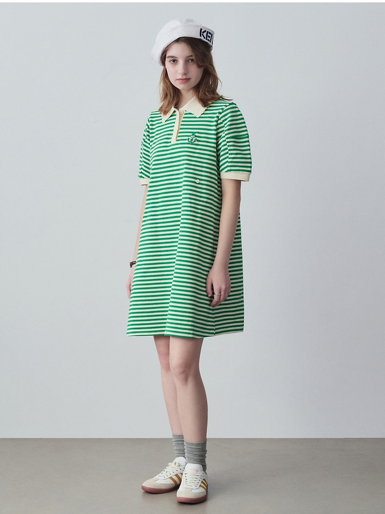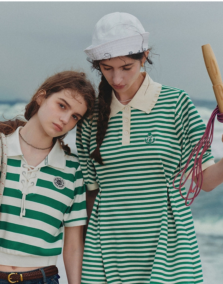 商品名称:小熊夏季款条纹撞色POLO连衣裙宽松时尚裙女装 308609