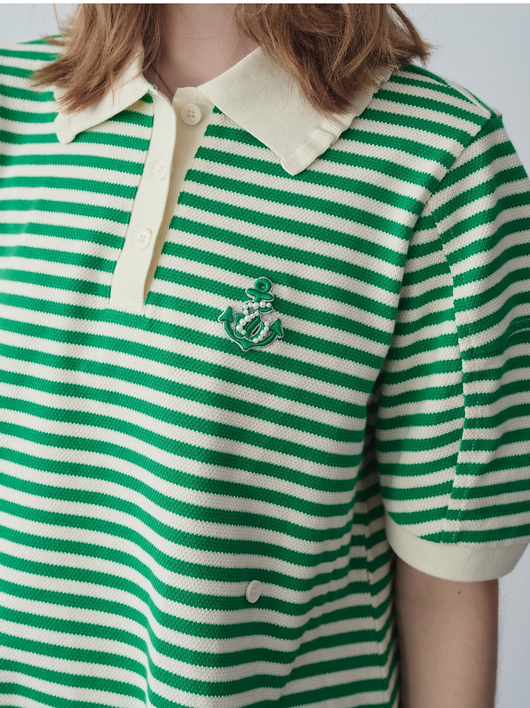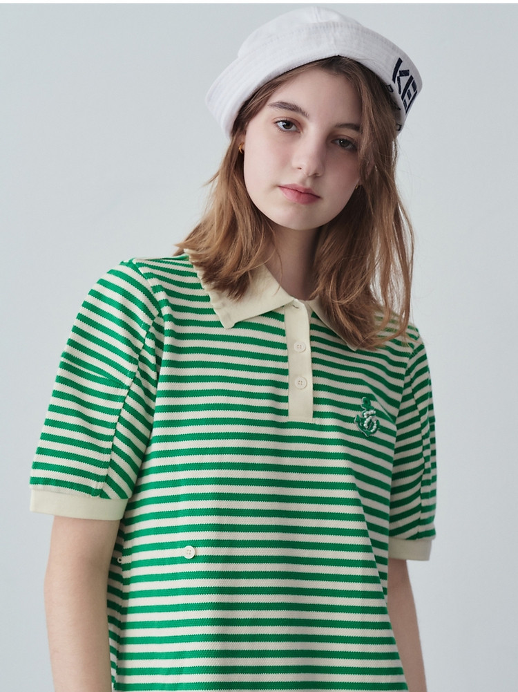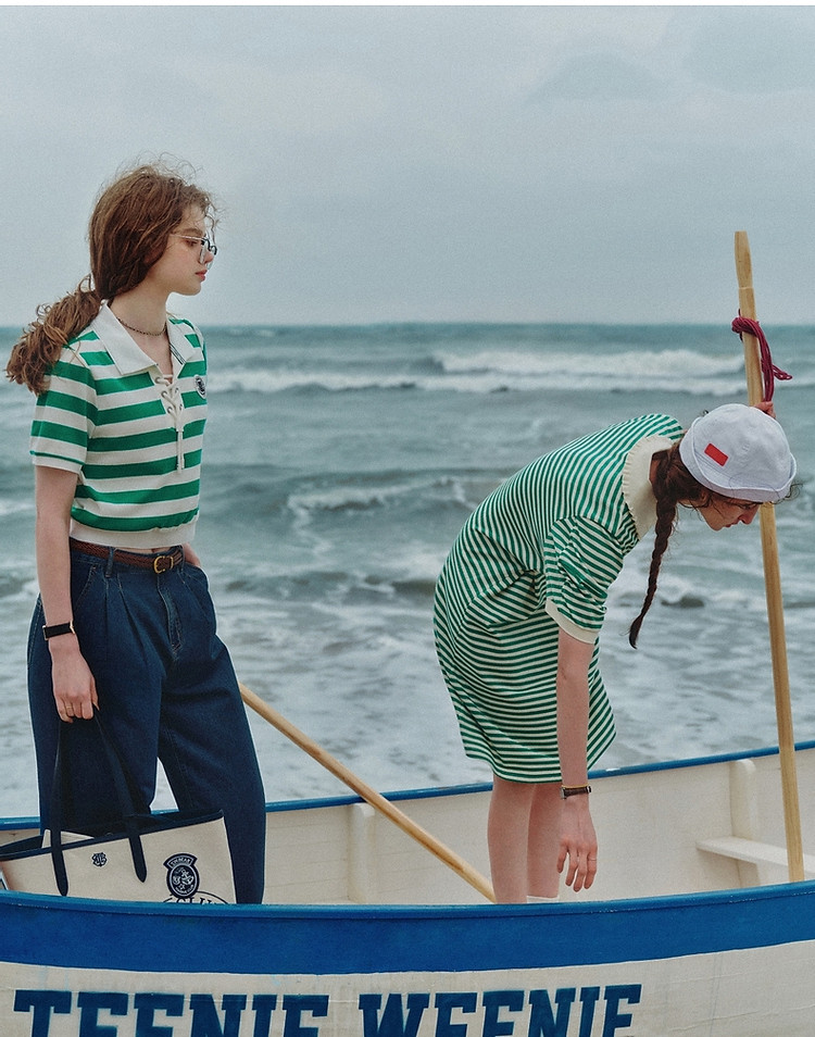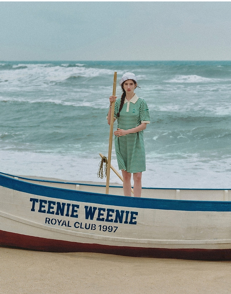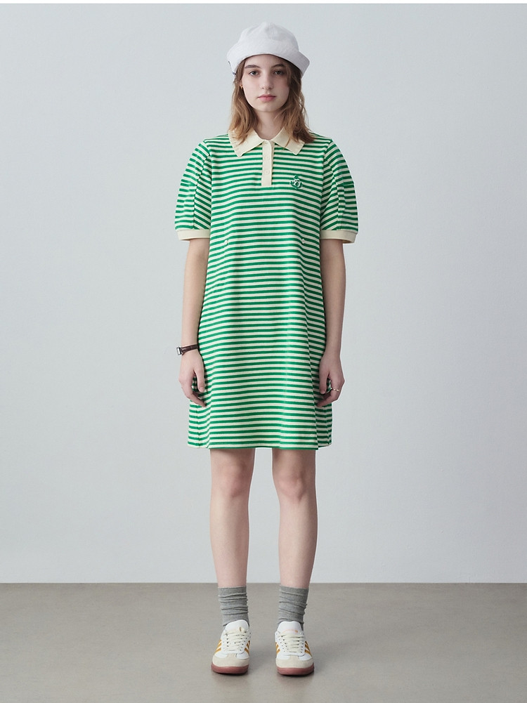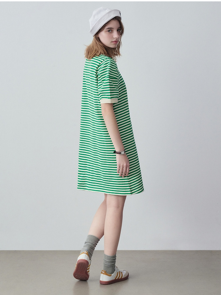 商品名称:小熊夏季款条纹撞色POLO连衣裙宽松时尚裙女装 308609