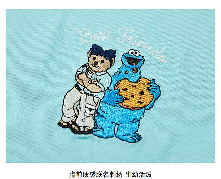 商品名称:小熊&芝麻街联名款夏季多巴胺宽松圆领短袖T恤女士 002945