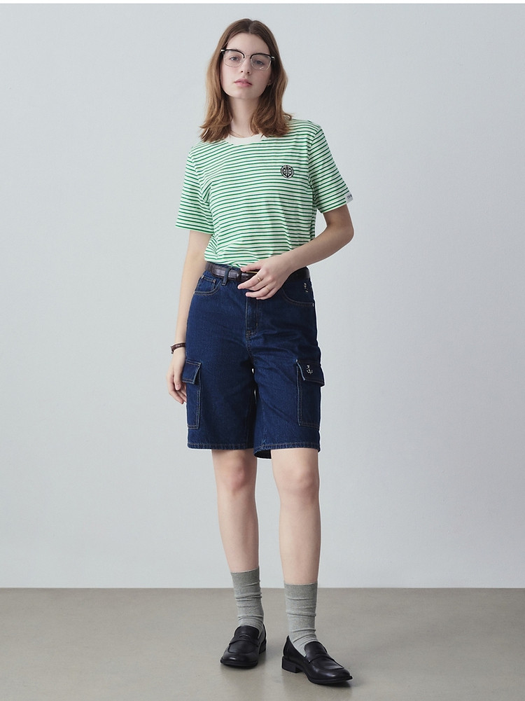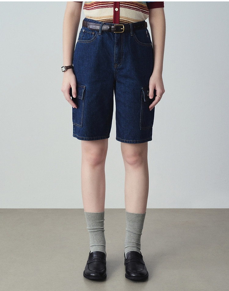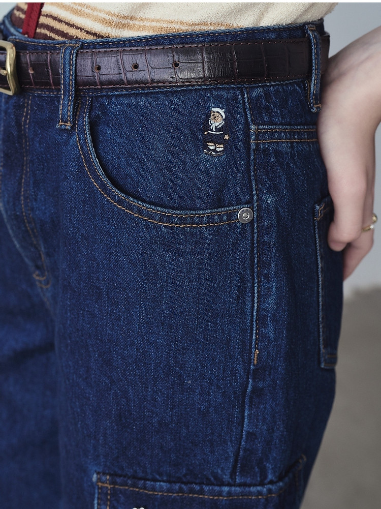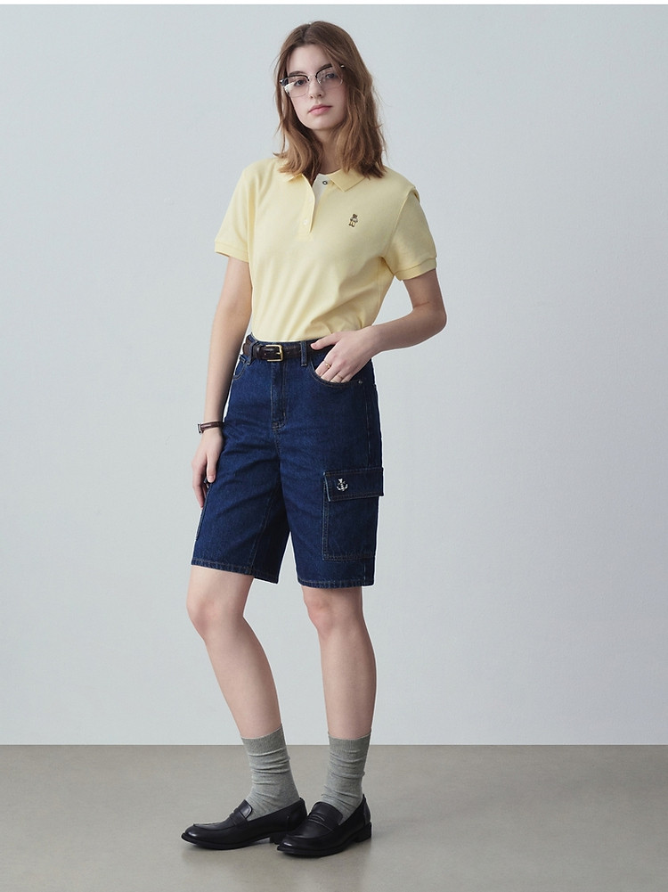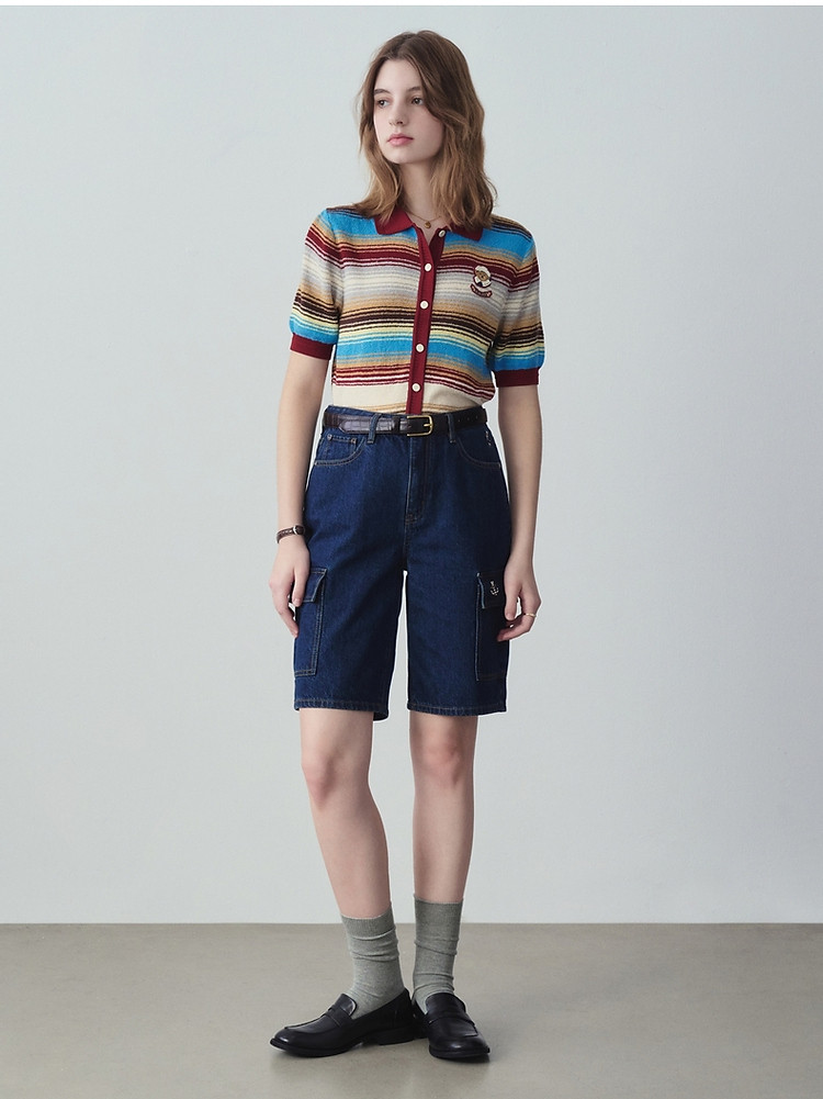 商品名称:小熊夏季款高腰牛仔裤中裤短裤宽松时尚女士 013377