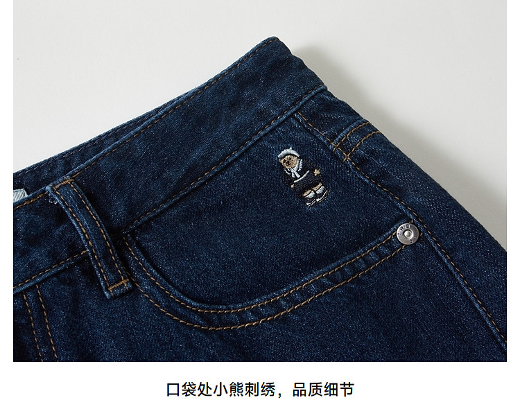 小熊夏季款高腰牛仔裤中裤短裤宽松时尚女士 013377