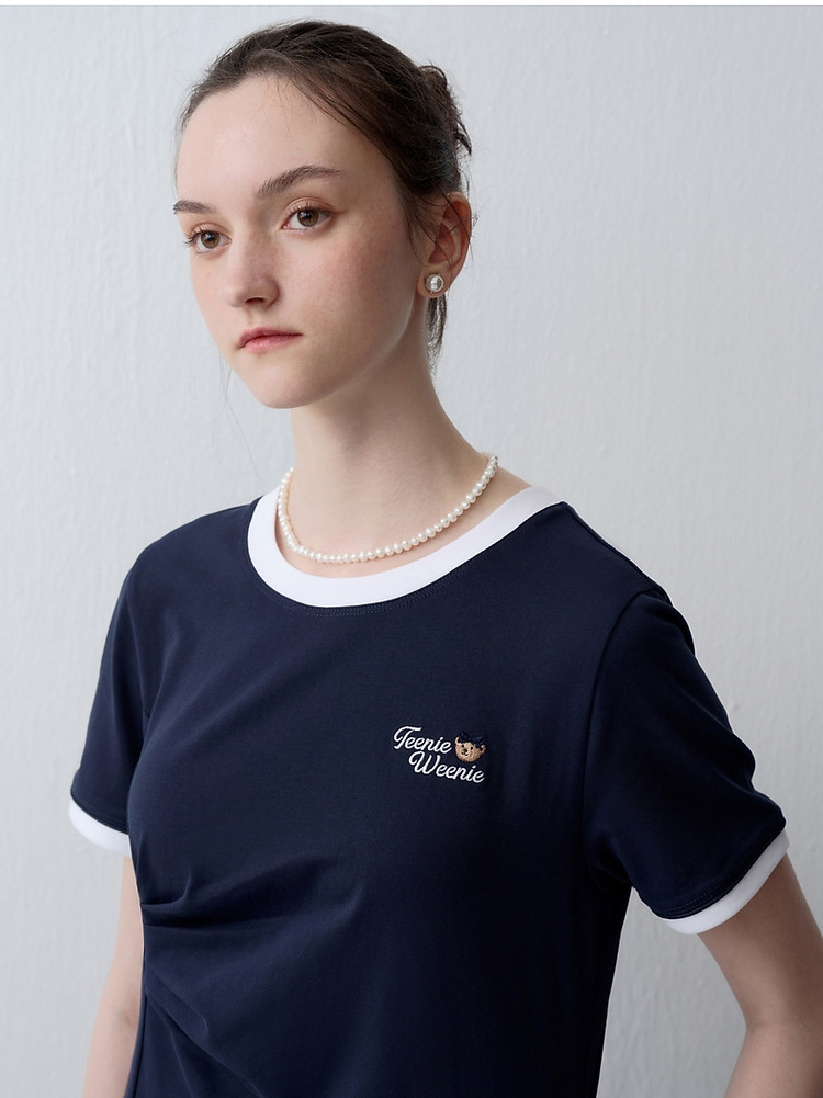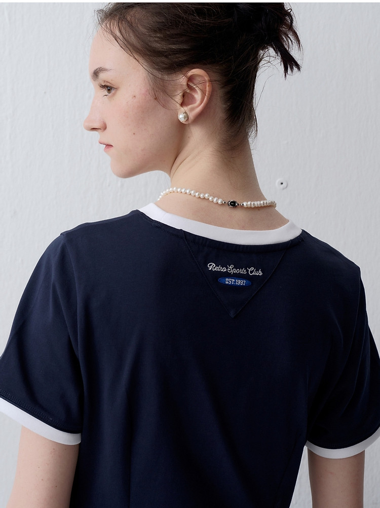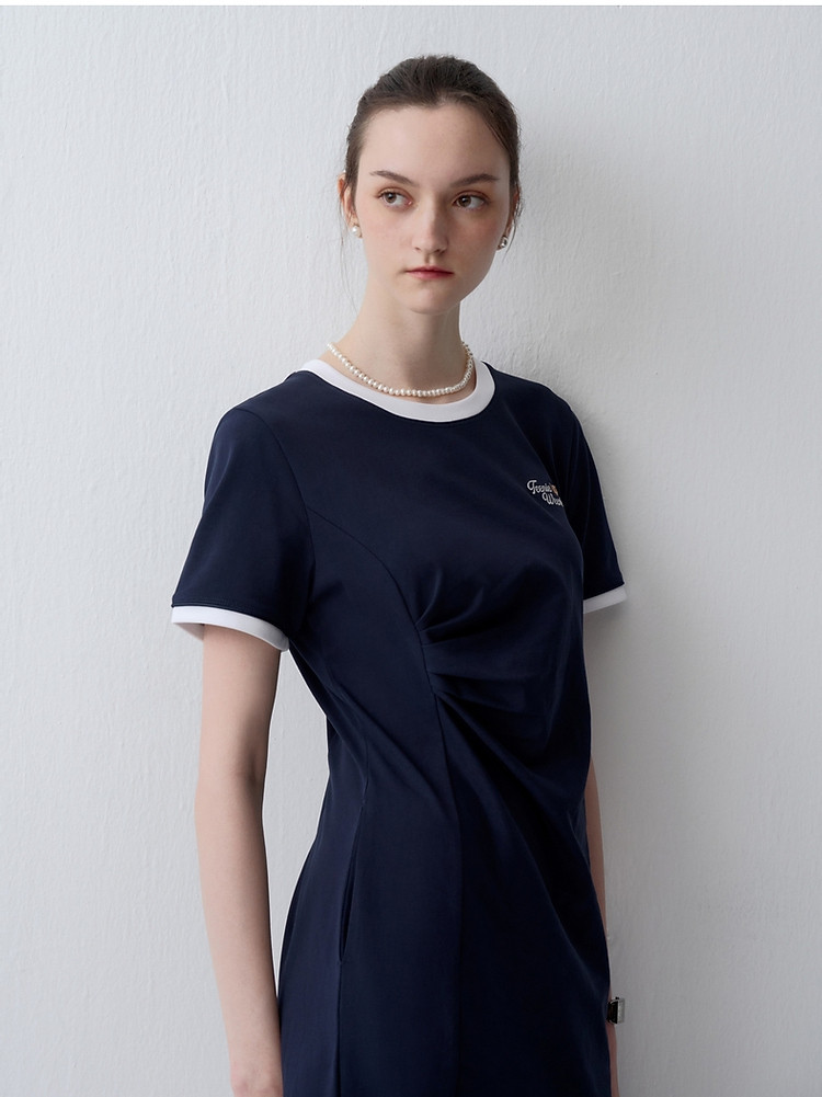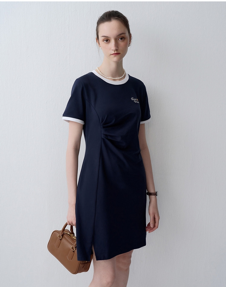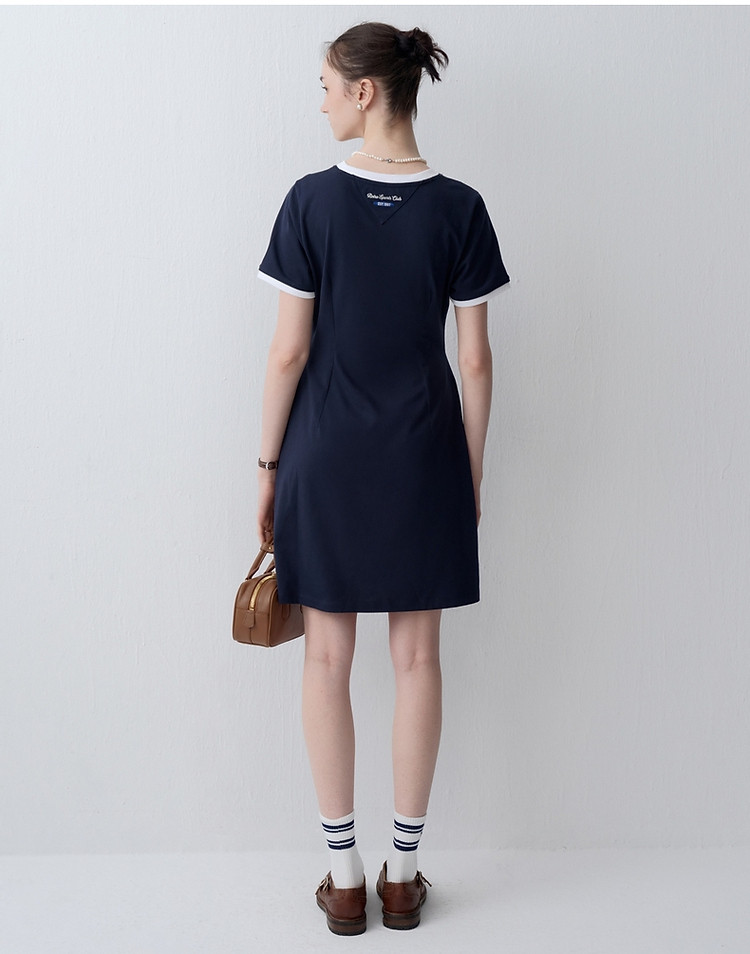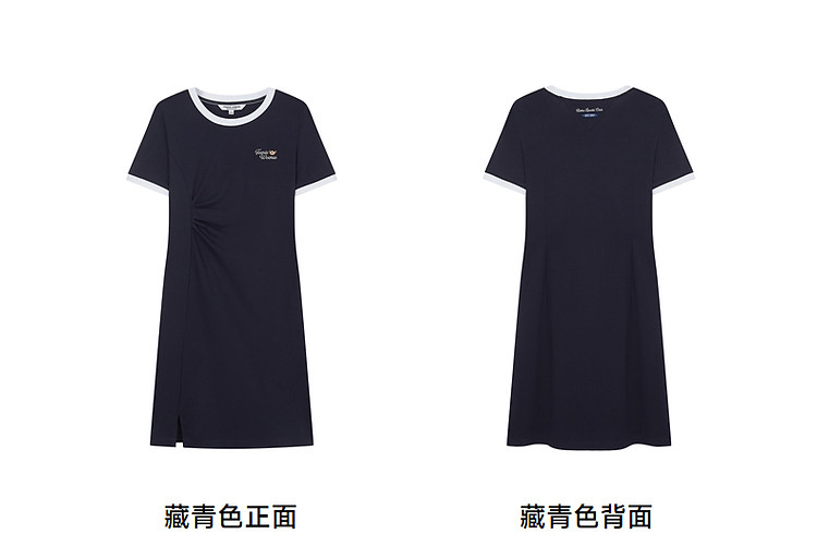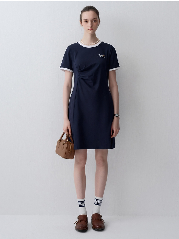 商品名称:连衣裙小熊女装夏季复古运动风侧缝拼接压褶连衣裙 153281