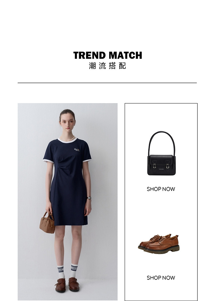 连衣裙小熊女装夏季复古运动风侧缝拼接压褶连衣裙 153281