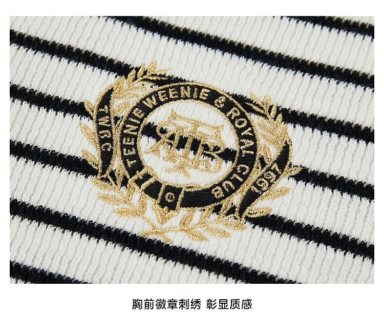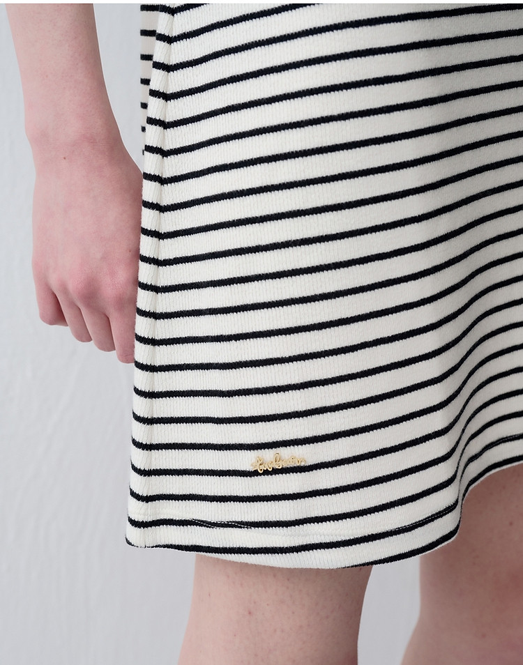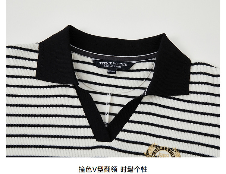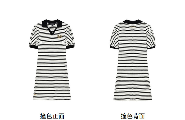 商品名称:小熊款夏季条纹V领针织POLO连衣裙收腰中裙女装 341697