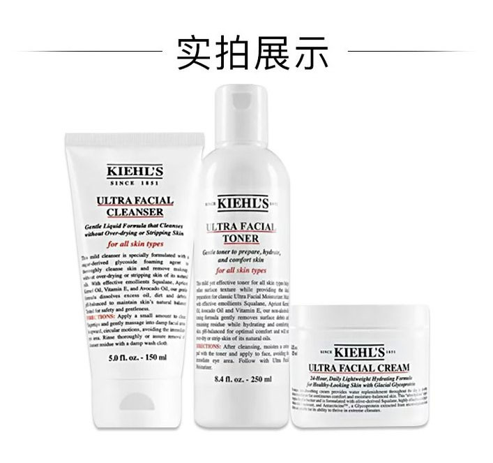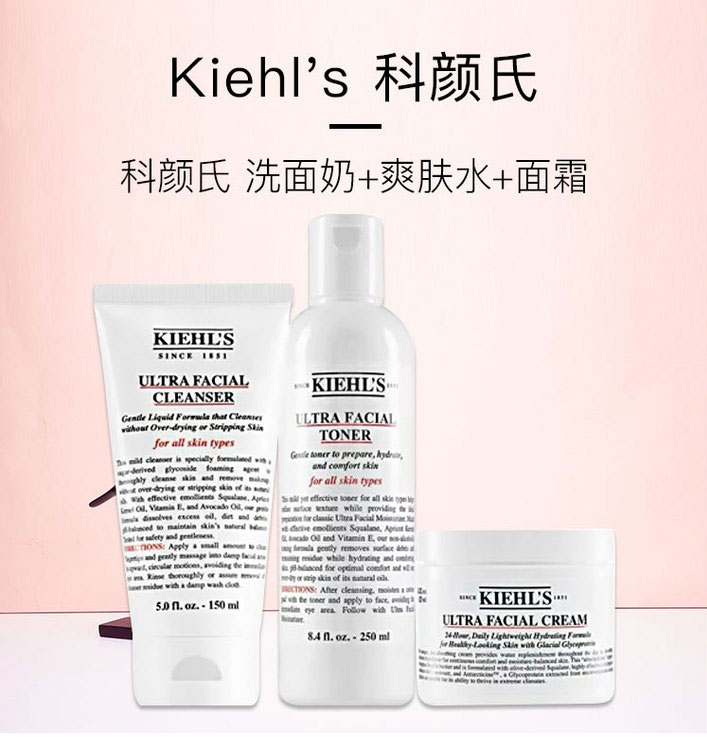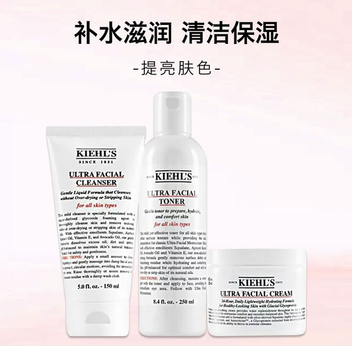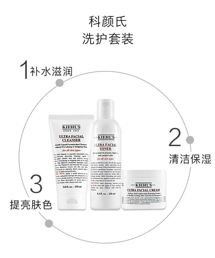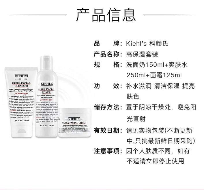 商品名称:Kiehl's /科颜氏 高保湿三件套 洁面150ml+水250ml+面霜125ml
