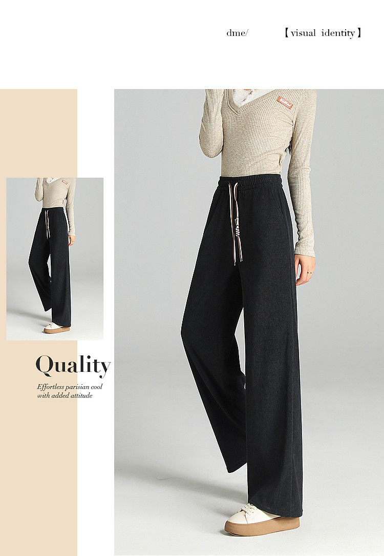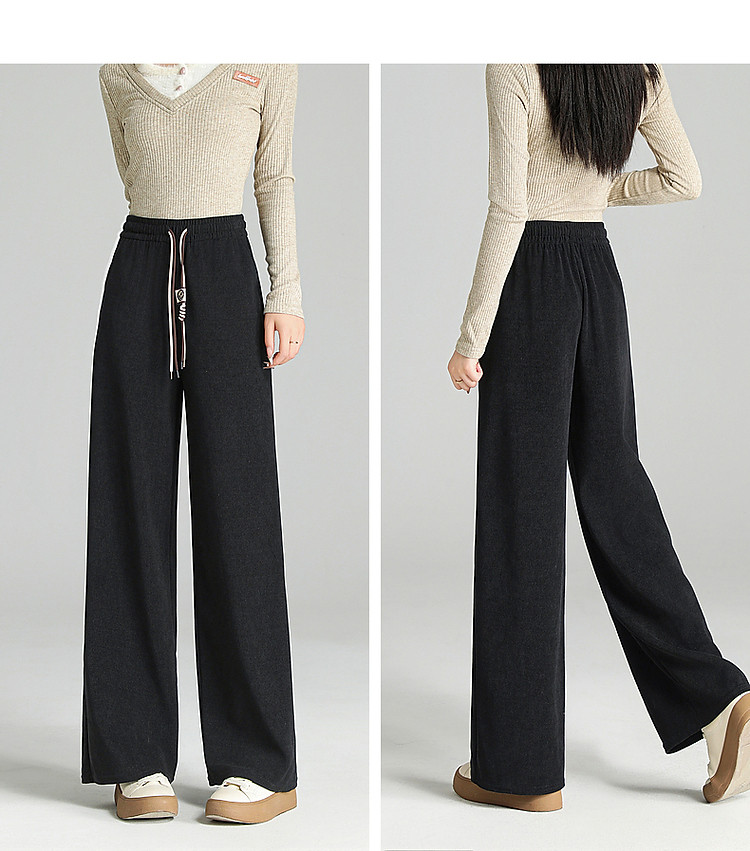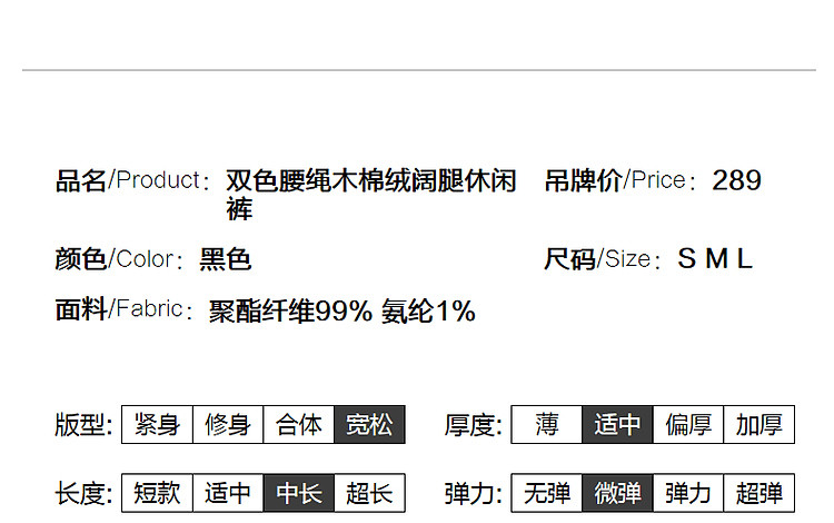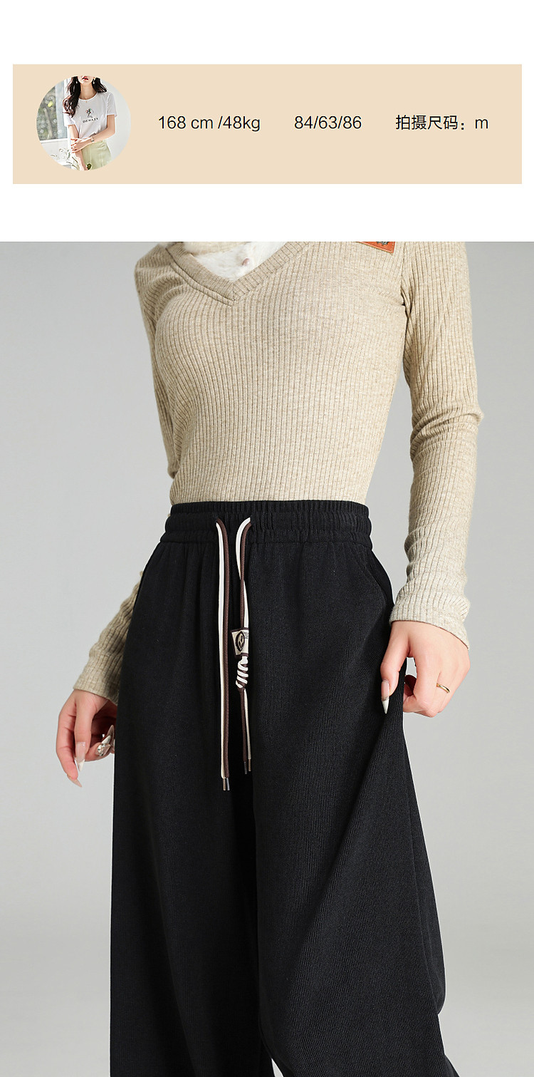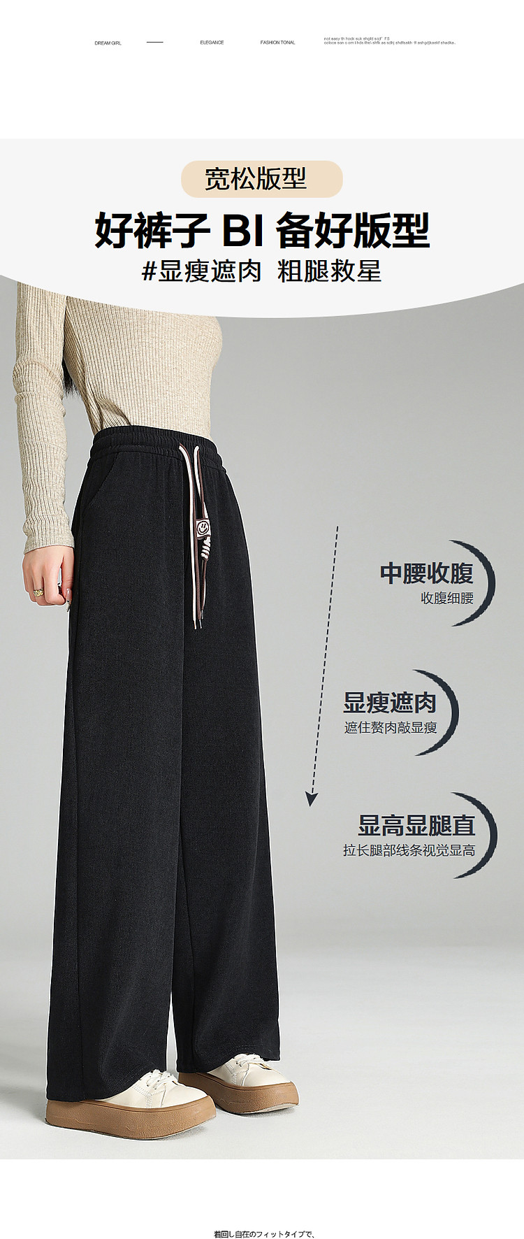 商品名称:【木棉绒阔腿休闲裤】春秋季中腰松紧长裤宽松女裤子女 077377