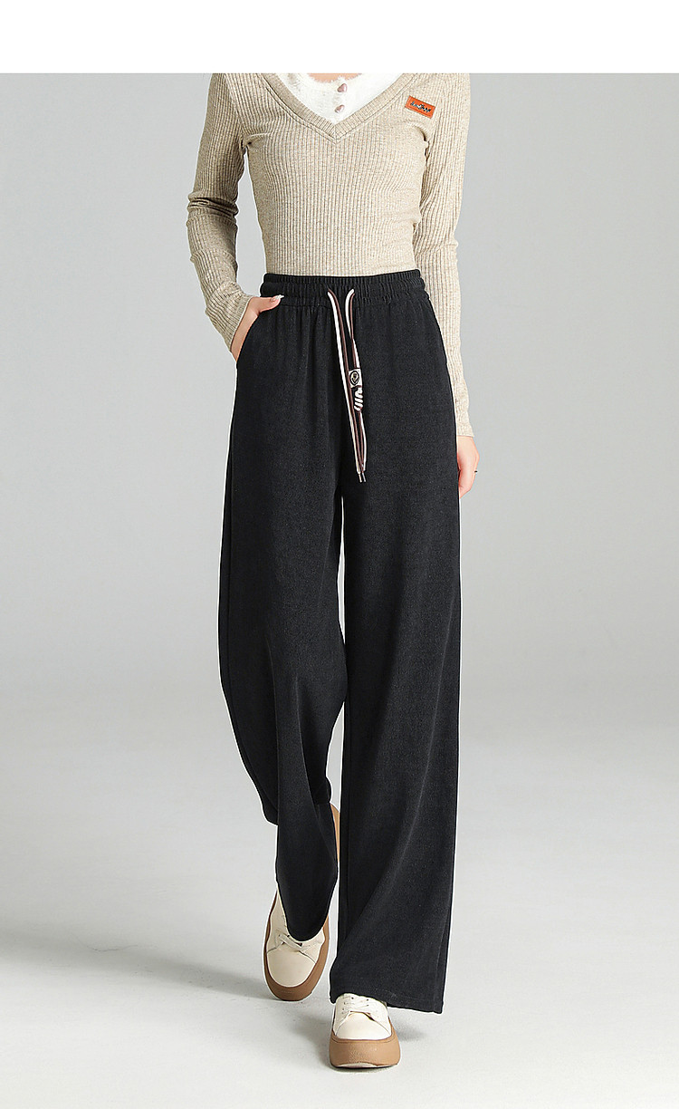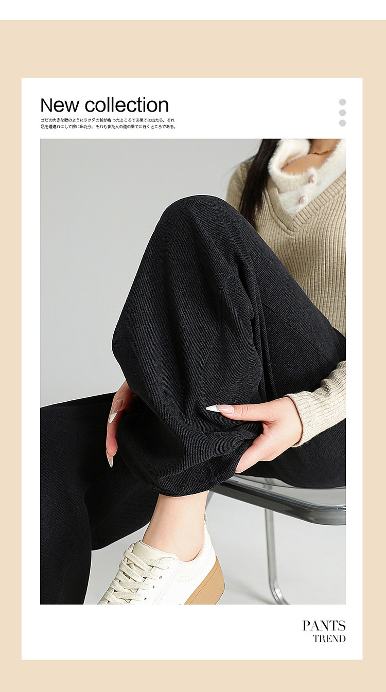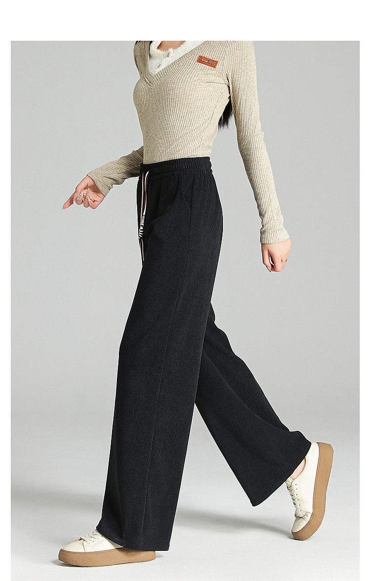 【木棉绒阔腿休闲裤】春秋季中腰松紧长裤宽松女裤子女 077377