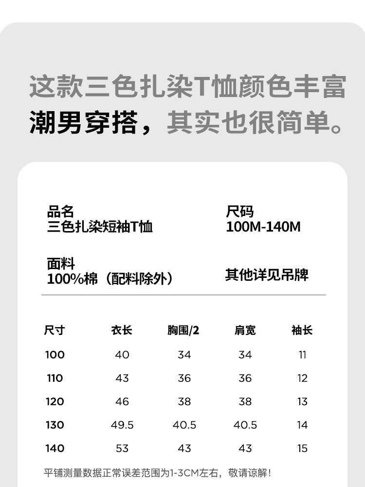 商品名称:【轻薄透气】夏季儿童T恤扎染印花夏装宝宝休闲T恤潮酷男童短袖 453784