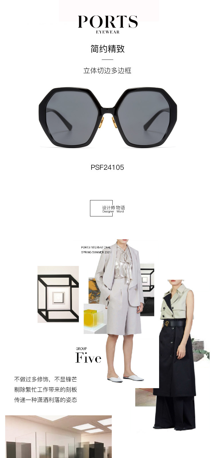 PORTS休闲女款简约立体切边多边形太阳镜PSF24105 729866