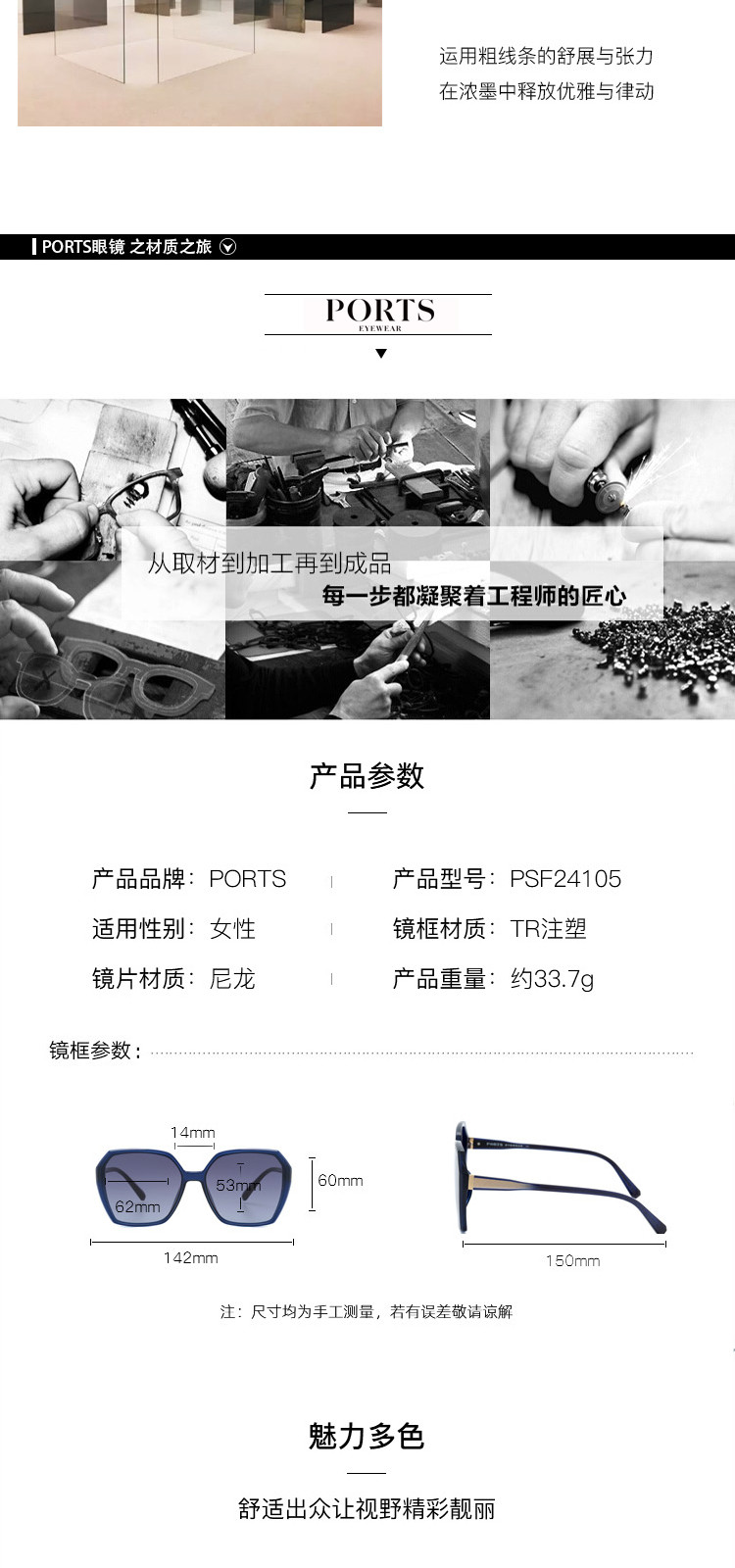 商品名称:PORTS休闲女款简约立体切边多边形太阳镜PSF24105 729866