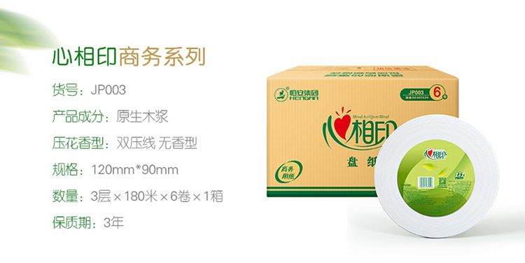 商品名称:JP003(箱装)心相印三层珍宝纸180米(6卷)
